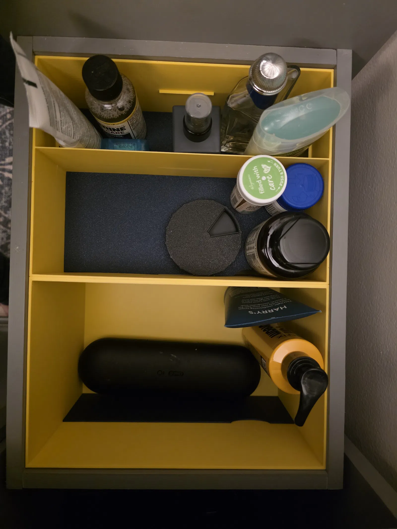 Mình muốn làm một cái insert theo ý cho ngăn kéo phòng tắm nên tự thiết kế cái này. Mình chia thành nhiều khoang, có thể tách theo chiều dọc bằng các miếng insert để tạo lưu trữ nhiều tầng, giúp giấu bớt kem đánh răng hay chỉ nha khoa dư. Mẫu này khá lớn nên mình tách ra thành 2 phần và dùng chốt (peg) để căn thẳng cho dễ. Mình cũng kèm luôn bản full insert phòng khi bạn có máy in lớn hơn.