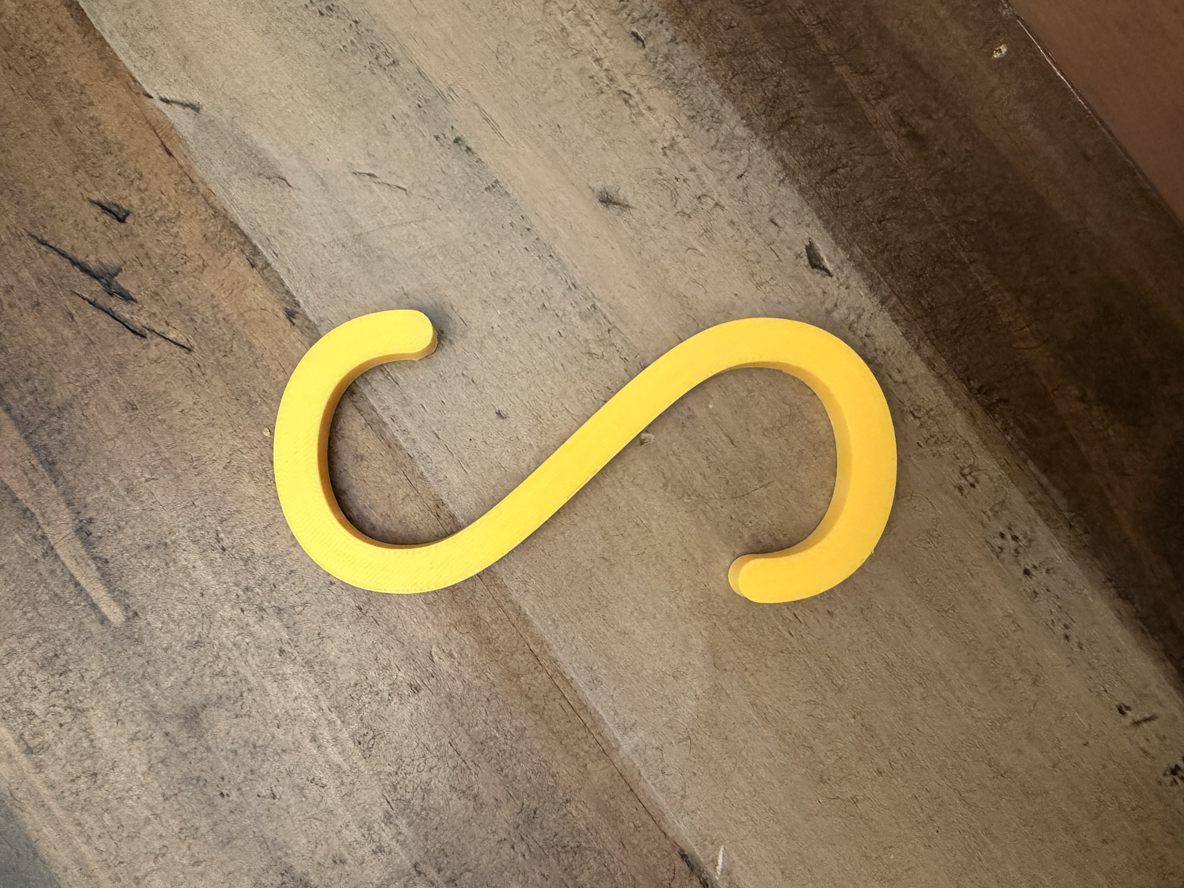 Mẫu móc chữ S chịu tải nặng, thiết kế có tuỳ chọn cạnh bo tròn hoặc vát mép để giảm cấn tay và hạn chế làm trầy bề mặt khi treo. Phù hợp treo đồ trong tủ, móc áo, sắp xếp phụ kiện.