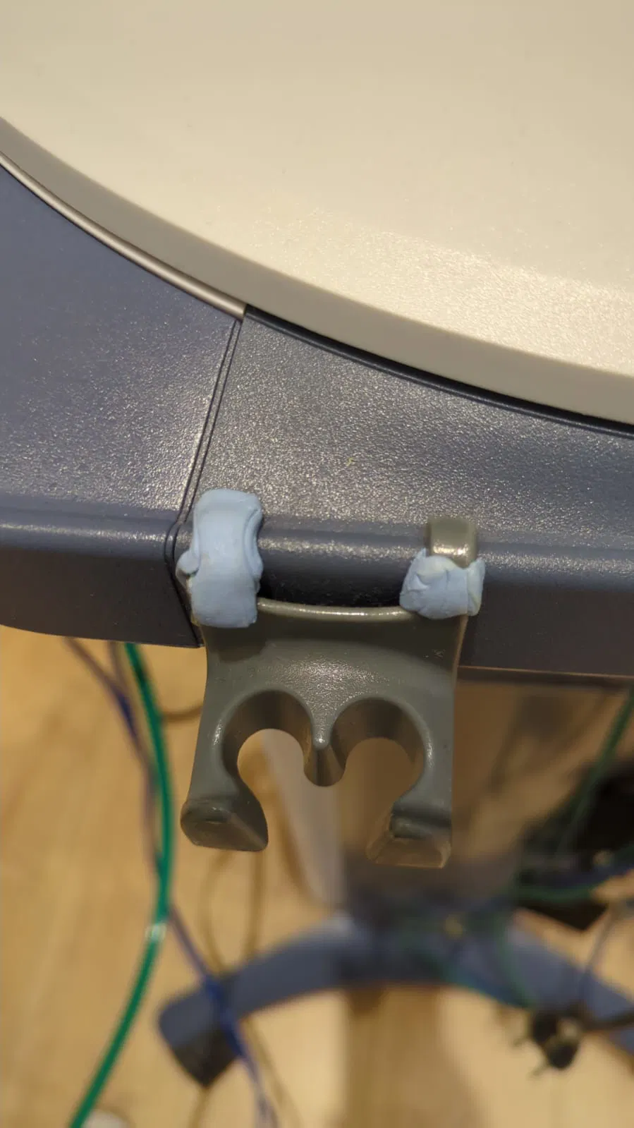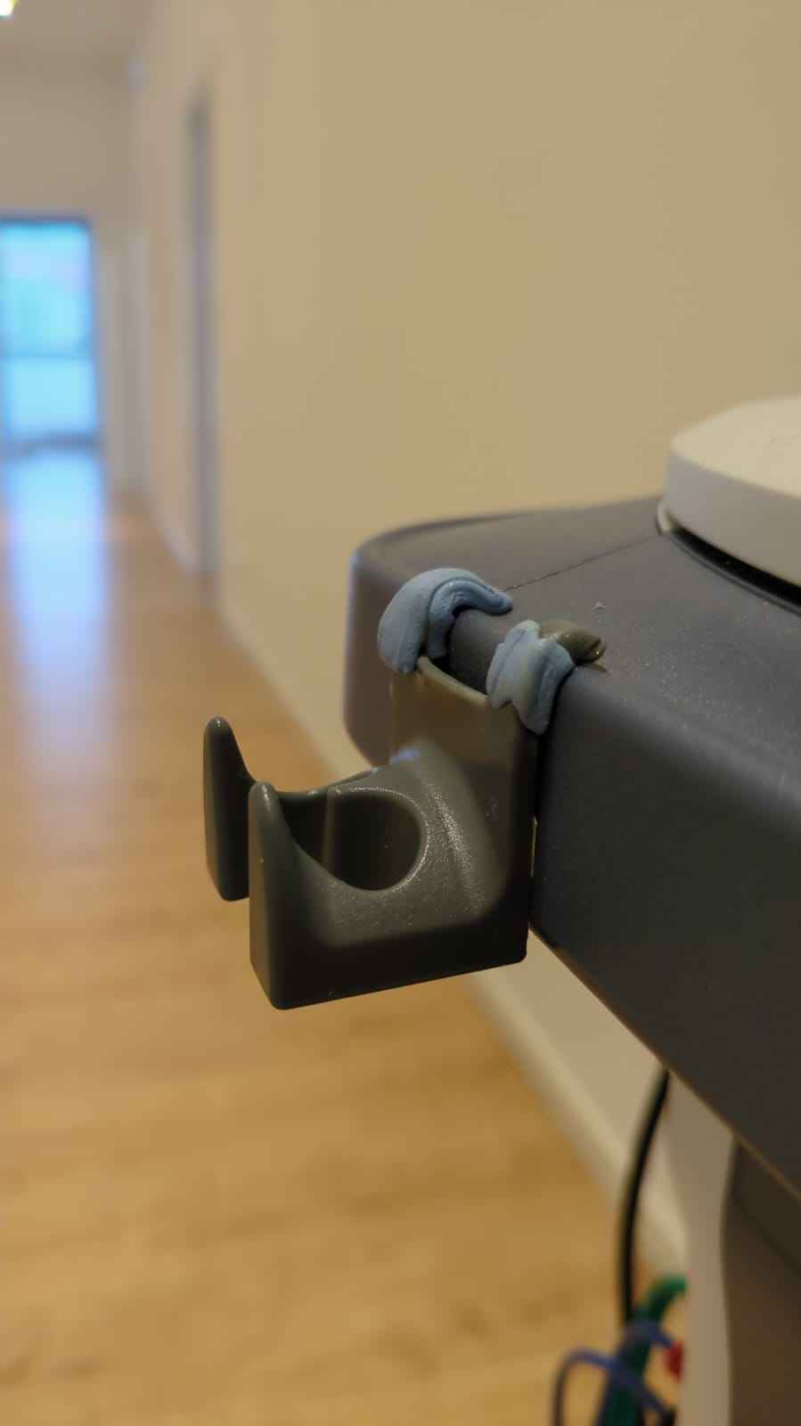 Cho một người nhà làm trong mảng ergo therapy, họ có một cái máy (chattanooga) dùng cho kiểu trị liệu siêu âm (ultrasonic therapy) gì đó. Cái máy này có một cái holder để gắn 2 suction cup (hình đầu tiên), và họ đã thử tự sửa (hai hình cuối). Mình thiết kế cái mount hơi khác so với bản gốc, nhưng nghe nói dùng ổn.