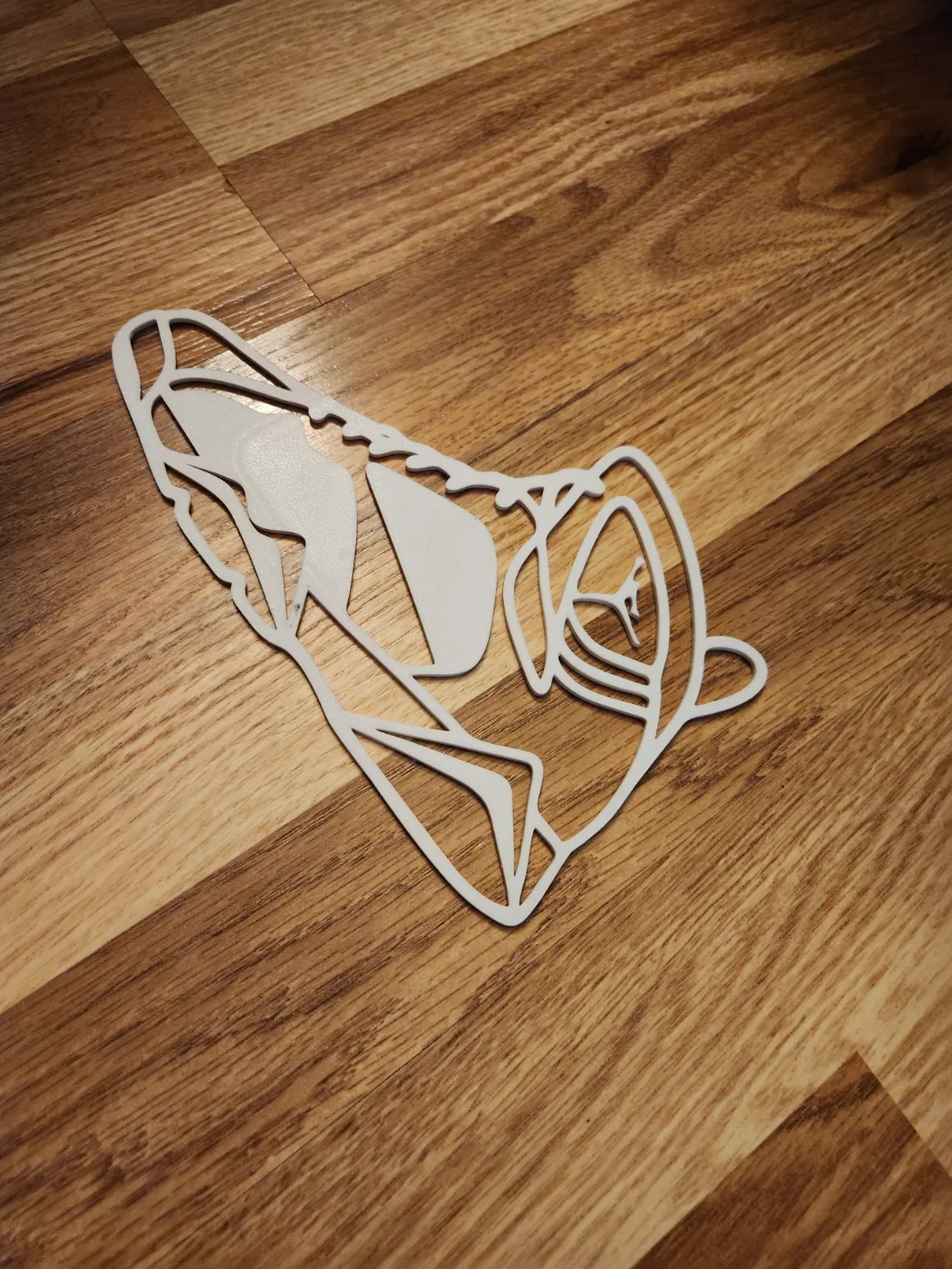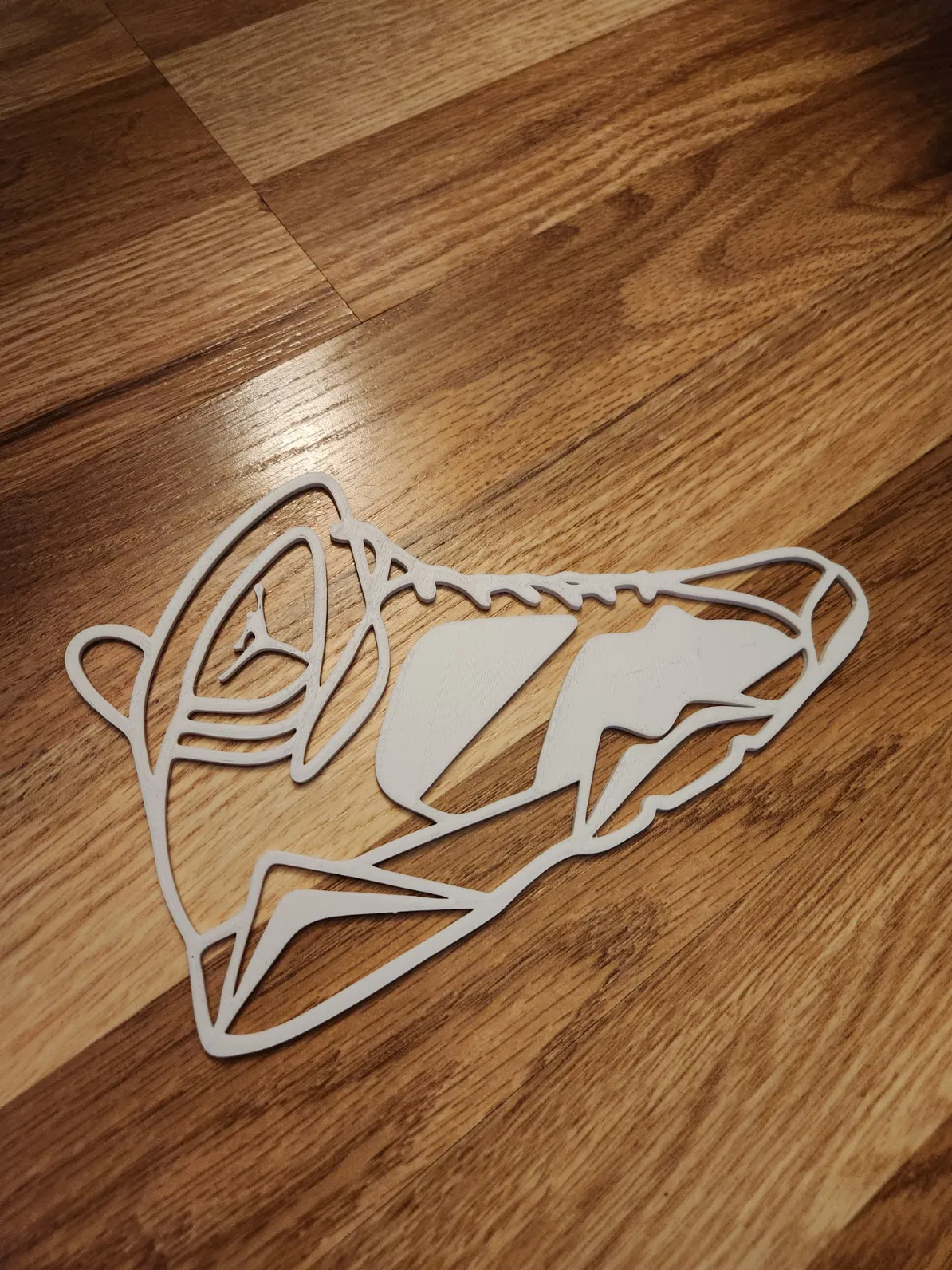 Wall art dạng silhouette của Jordan VII (7) Retro VII với đường viền mảnh, in nhanh và dễ, không cần supports. Phù hợp treo phòng sneaker, góc gaming, phòng ngủ hay decor shop; vừa bed 220×220.