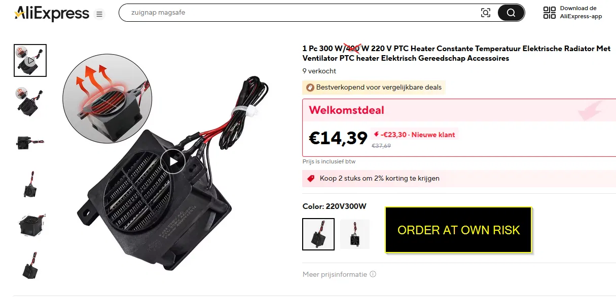 Bộ Heater có bán trên Amazon hoặc AliExpress, tìm với từ khóa: "PTC 300w heater".