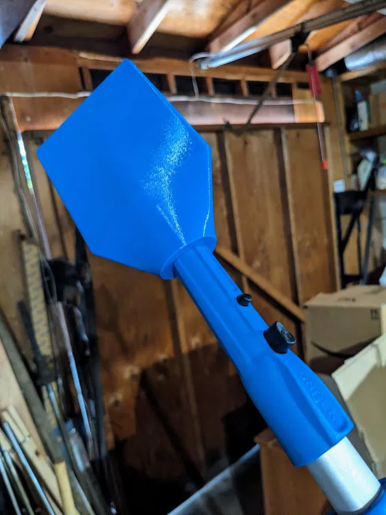 Một đầu cào có thể kết nối với tay cầm chổi tiêu chuẩn hoặc nhiều hệ thống cực kính thiên văn.