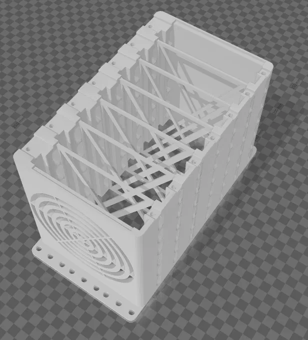 Bản Rack 5 khay được nâng cấp để mát hơn: thay 4 quạt 40mm bằng 2 quạt 80mm ở phía sau, đồng thời thêm khe thông gió giữa các ổ đĩa để giảm nhiệt khi chạy lâu.