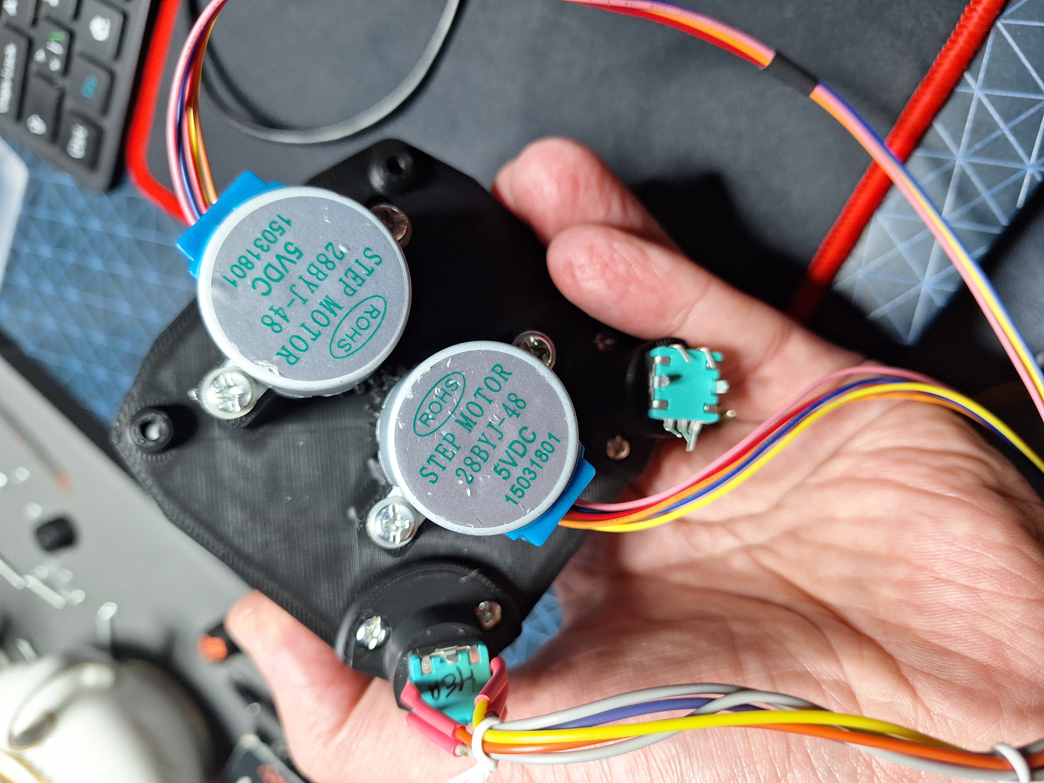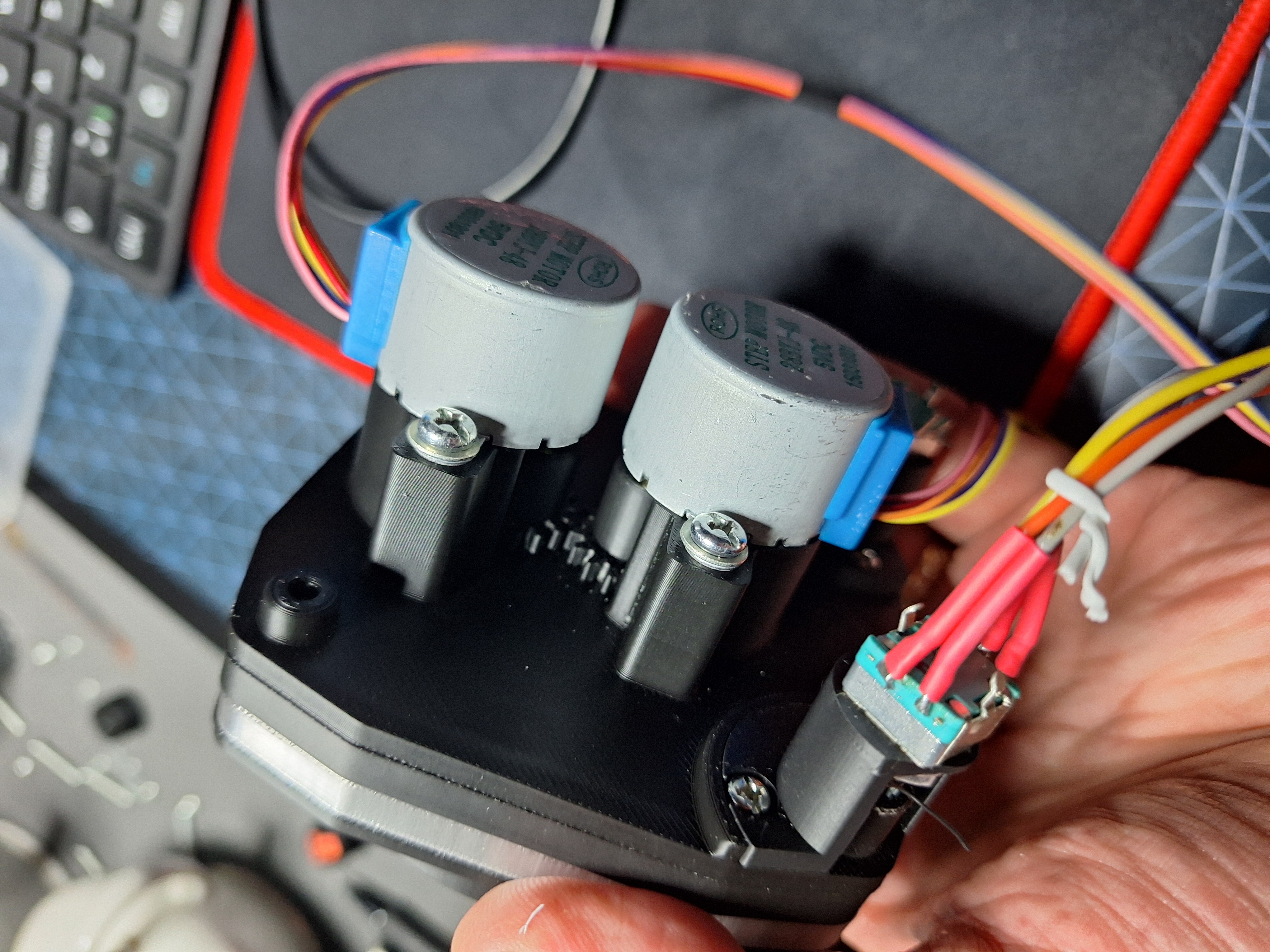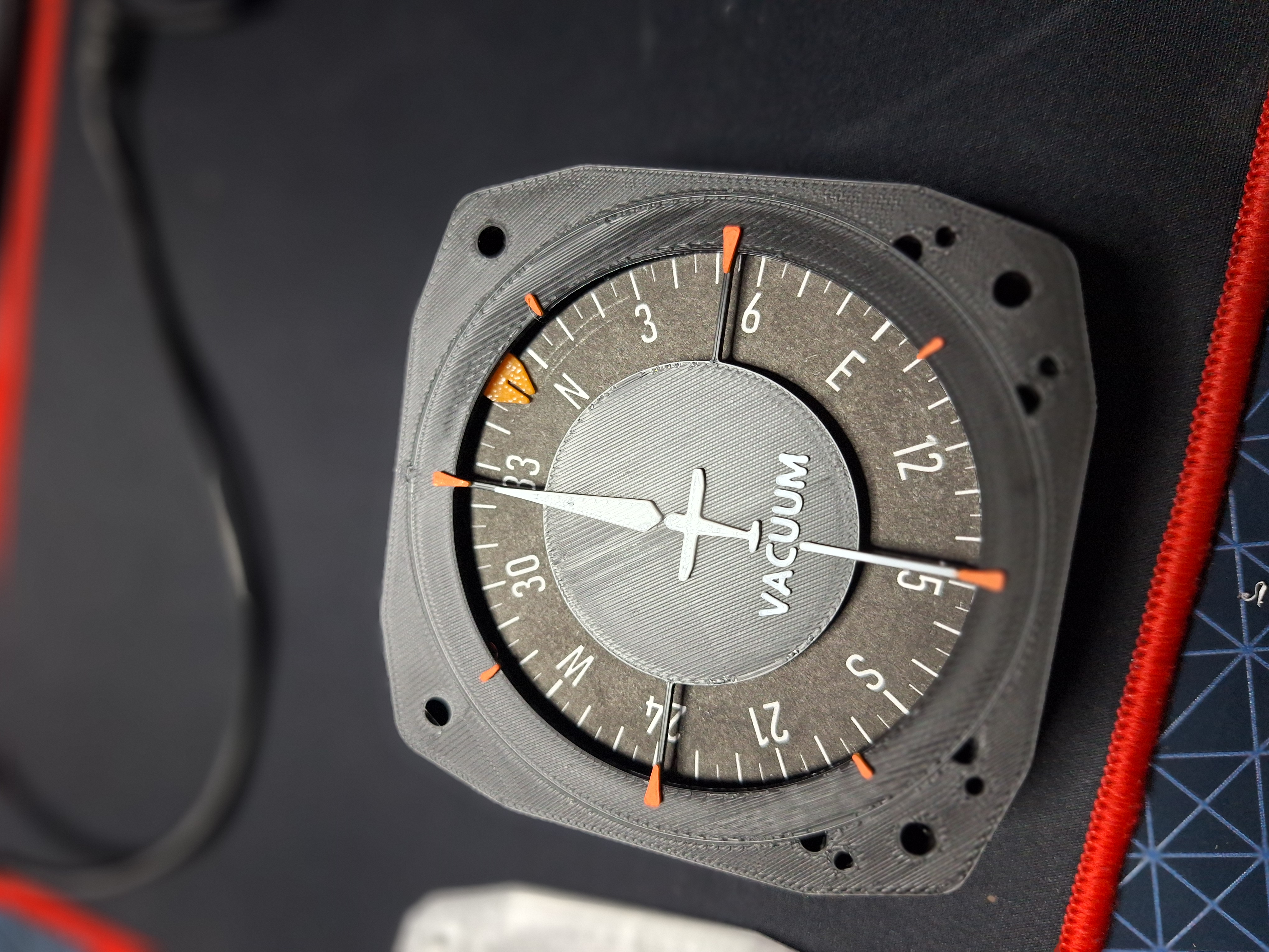 Một mẫu Gyro Compass được in 3D hoàn toàn. Cơ cấu chuyển động dùng 2 stepper motor loại tiêu chuẩn và 2 encoder để chỉnh Heading Bug và đồng bộ Vacuum DG.