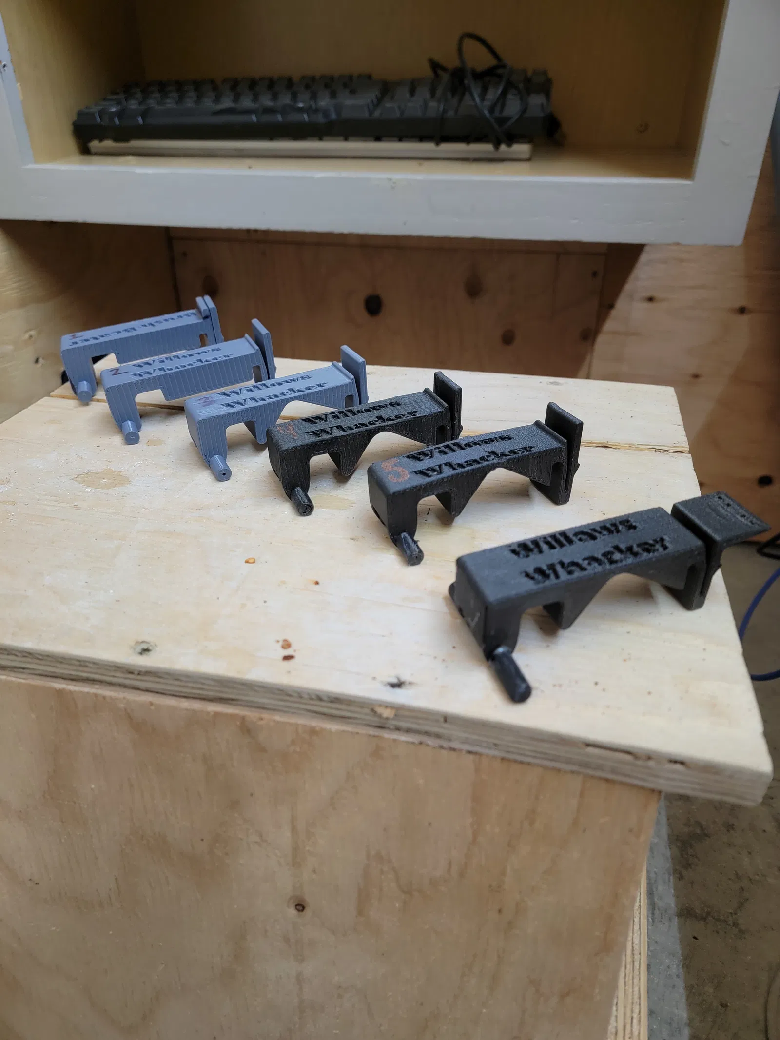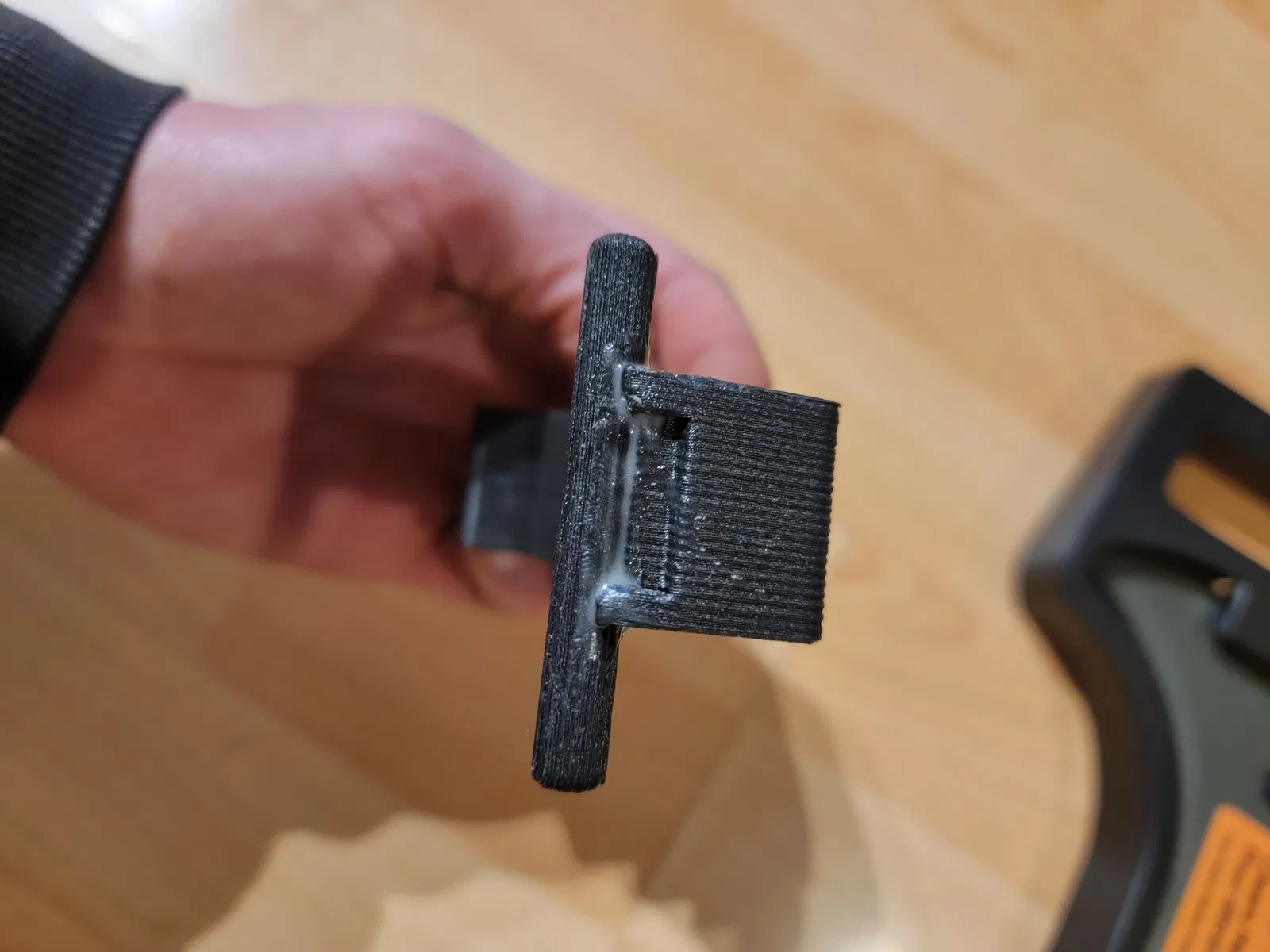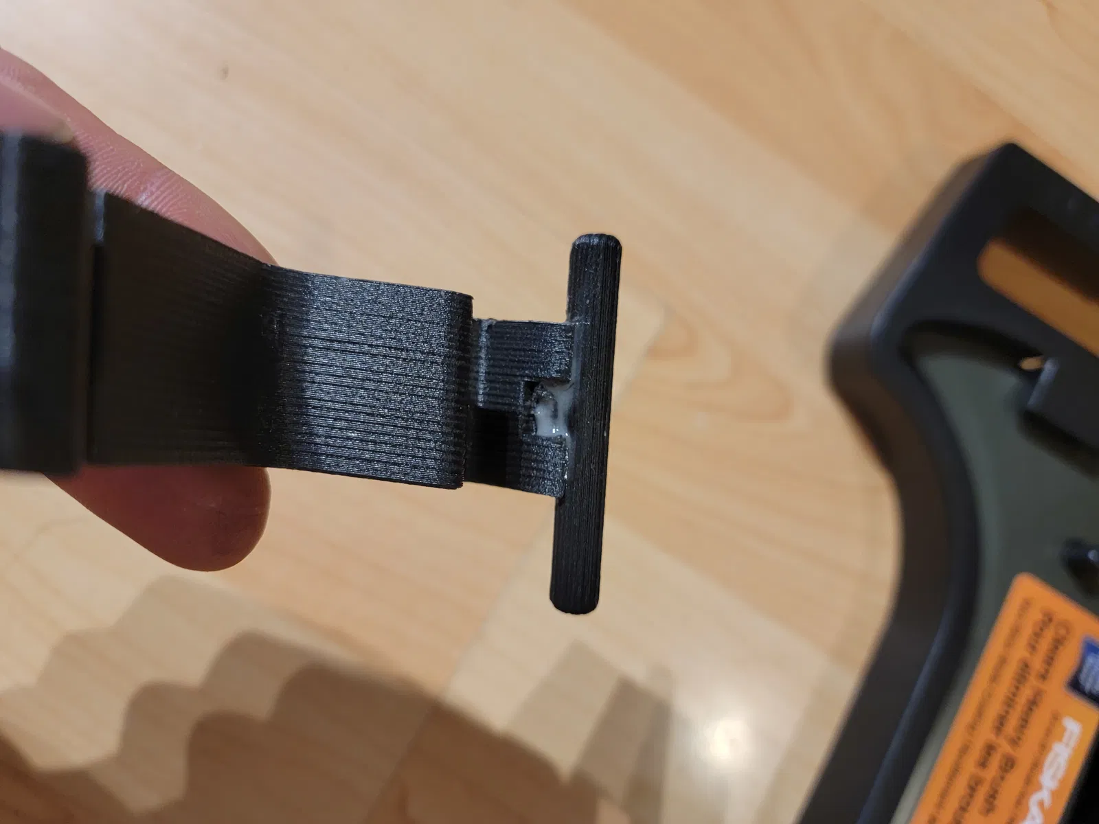 Bản “2 piece fiskars 9in Brush axe Clip” mình in bằng PA 12 GF, chia làm hai mảnh. Mình gắn nó lên snowmobile nên cần một latch chắc hơn, khó tháo hơn nhưng đổi lại an toàn và cứng cáp hơn nhiều. Mình có khò lửa hai mảnh bằng torch rồi dùng epoxy chuyên cho nhựa để dán lại. Bản này có thể in phẳng trên mặt “side” mà không cần support, còn “hinge pin” thì in rời để các layer lines nằm đúng hướng tối ưu. Dán xong mình đem anneal để tăng độ bền, rồi rehydrate lại nylon (phần này bạn tự tìm hiểu kỹ theo nhu cầu từng người).