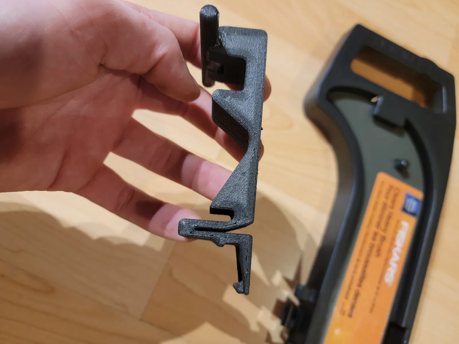Mẫu chốt cài (latch) thay thế trực tiếp cho kẹp/khóa màu cam trên vỏ Fiskars 23cm (9"). Có 2 phiên bản: bản dễ mở in PLA và bản 2 mảnh PA 12 GF chắc hơn để gắn ngoài trời, tối ưu hướng in & độ bền.