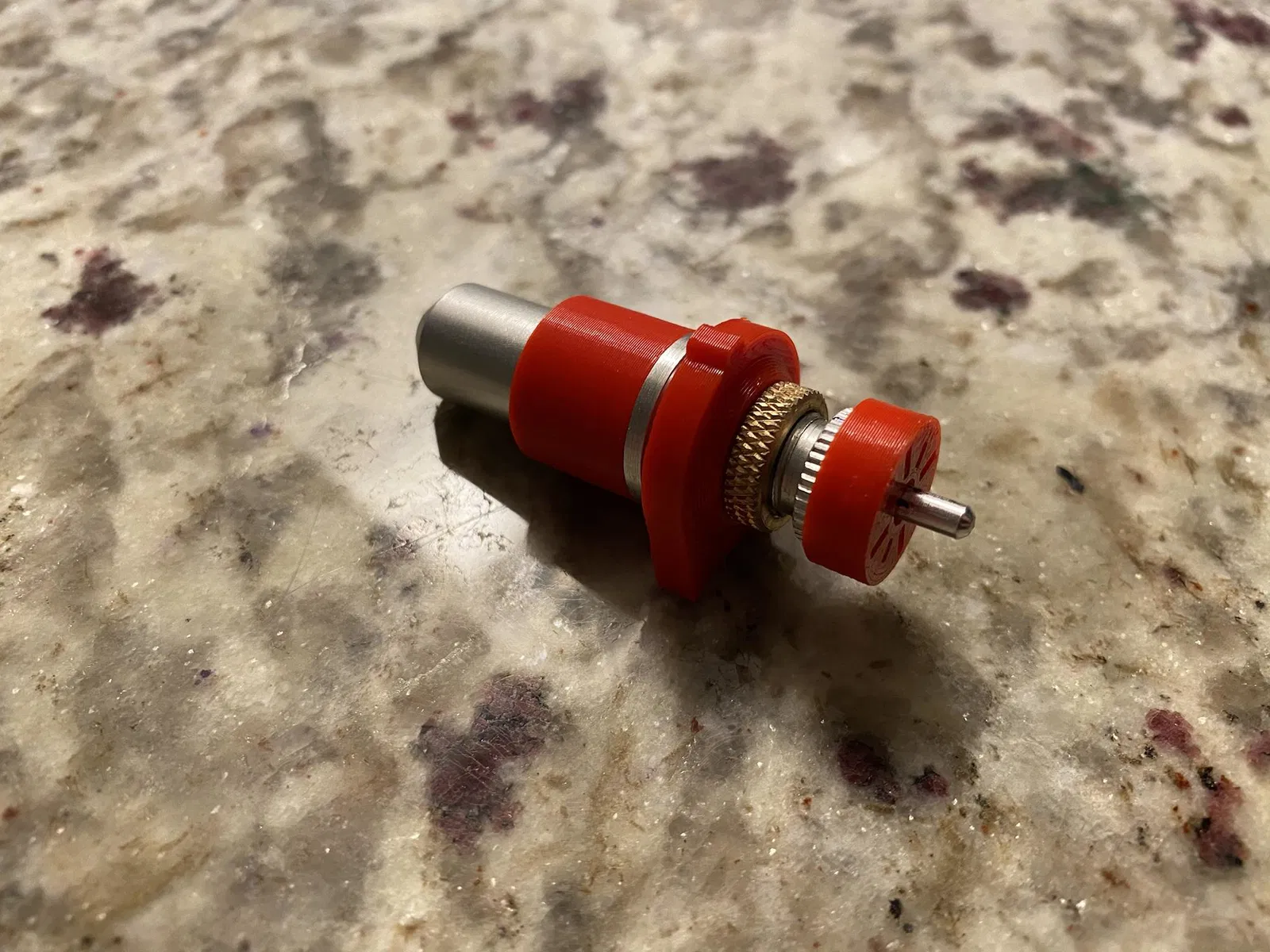 Mấy núm (knobs) mình thiết kế không bắt buộc phải dùng, nhưng mình làm để dễ canh chỉnh độ sâu lưỡi (blade adjustment). Bước ren (thread pitch) mình đo trên blade holder là 0.75 mm, nên mỗi vạch (tick) trên nắp sẽ xấp xỉ hơi dưới 1/10 mm.