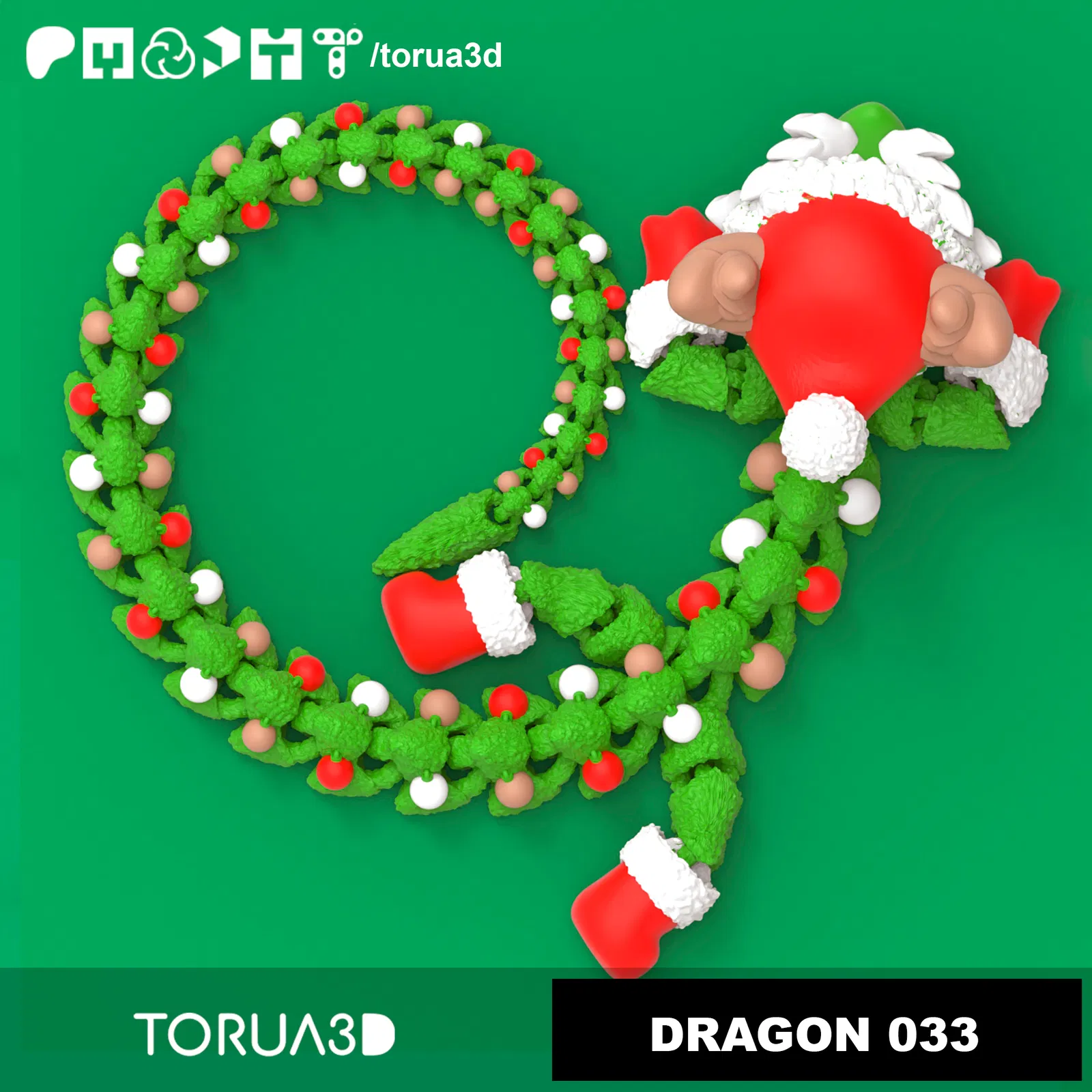Mẫu rồng khớp Articulated 033 dạng print in place, không cần supports. Thân rồng có họa tiết cây thông Noel và trang trí lễ hội, phù hợp decor Giáng Sinh hoặc làm quà. File STL, in dễ trên đa số máy.