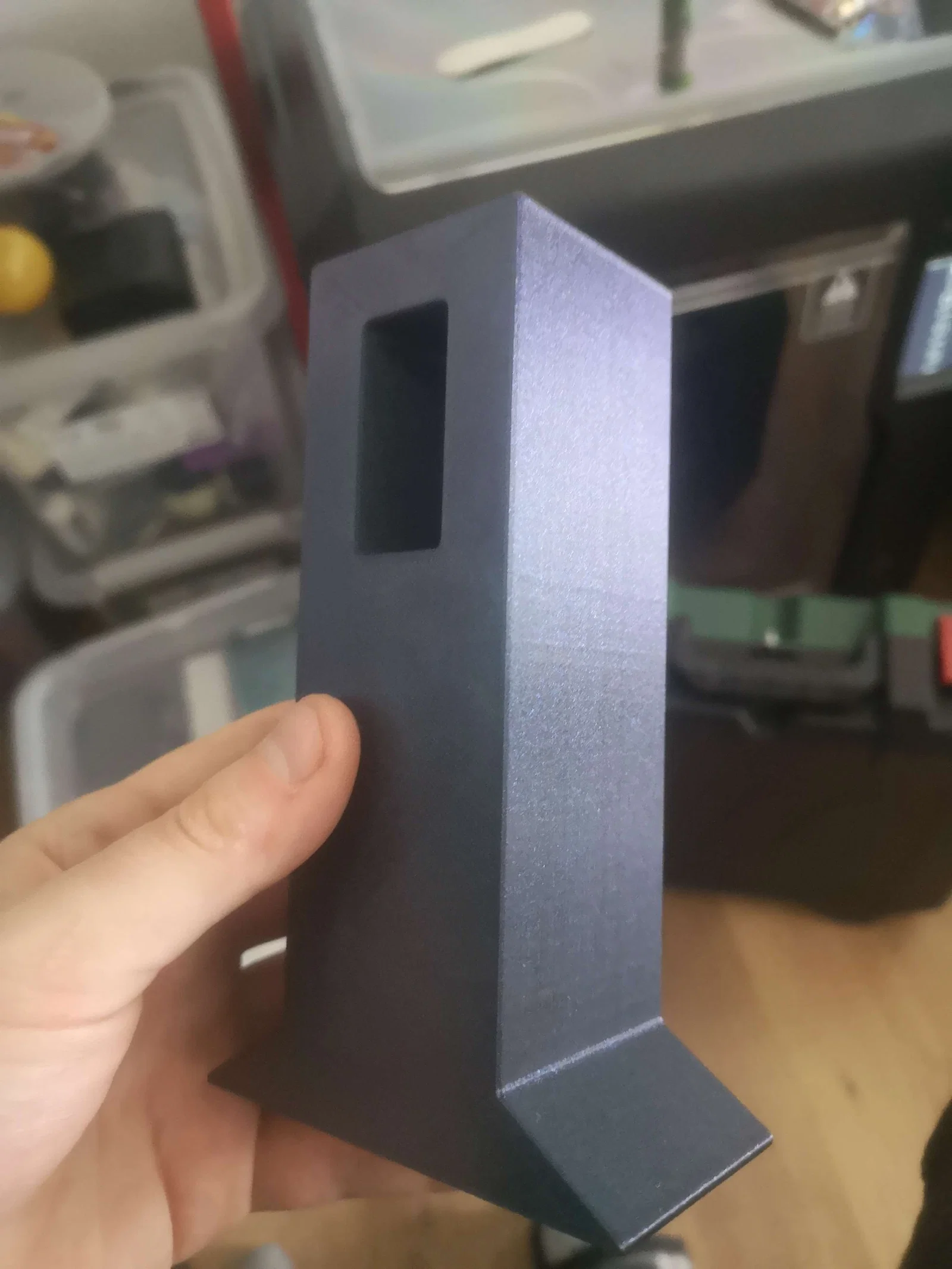Chân bàn kích thước 50x50x160, in PLA với 12% infill để nâng bàn thêm 10cm. Lỗ chân 20x40 sâu 50mm, xung quanh có vách dày 15mm. Mình in 6 cái, dùng khoảng 1 tháng chưa thấy biến dạng.