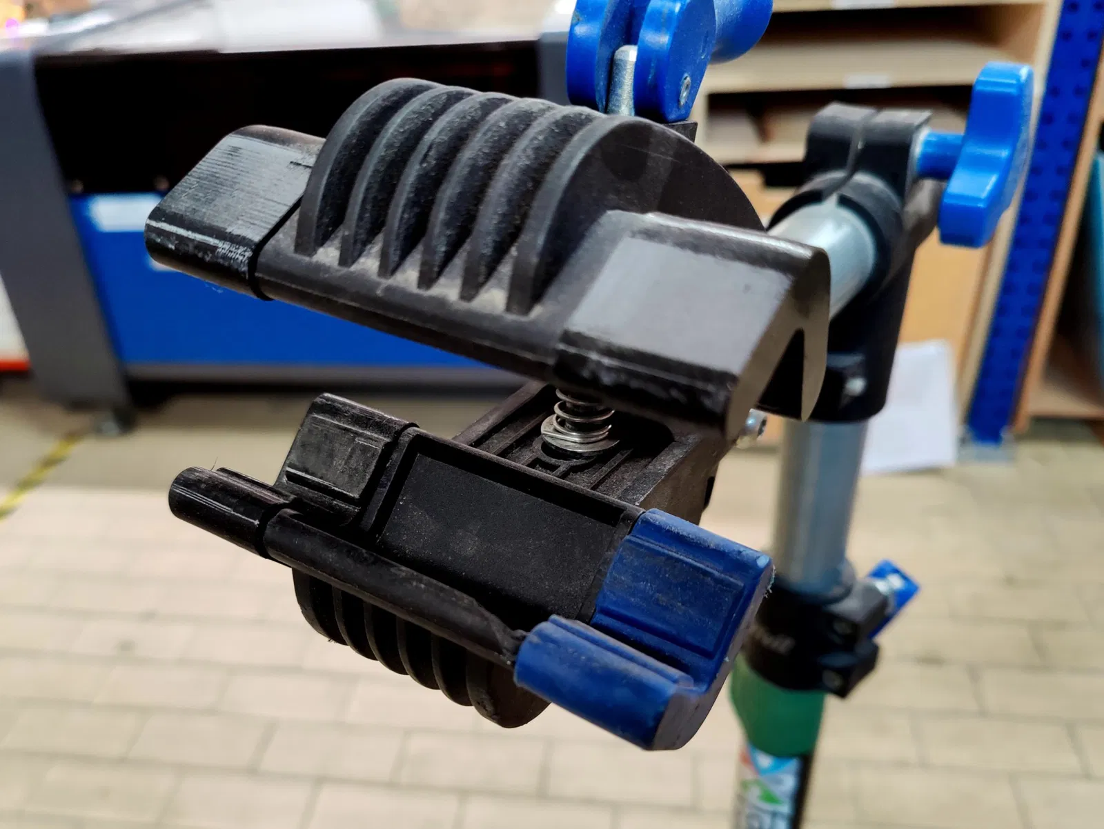 Các cản xe trên các giá đỡ sửa chữa xe đạp giá rẻ này có thể dễ dàng bị mất, đặc biệt là trong một không gian chung như không gian sản xuất. Ngoại lệ duy nhất là bán kính trên cạnh dưới đáy (liên quan đến hướng mô hình mặc định) là nông hơn nhiều để nó có thể dễ dàng in mà không cần hỗ trợ. Để giảm độ cứng hơn nữa.