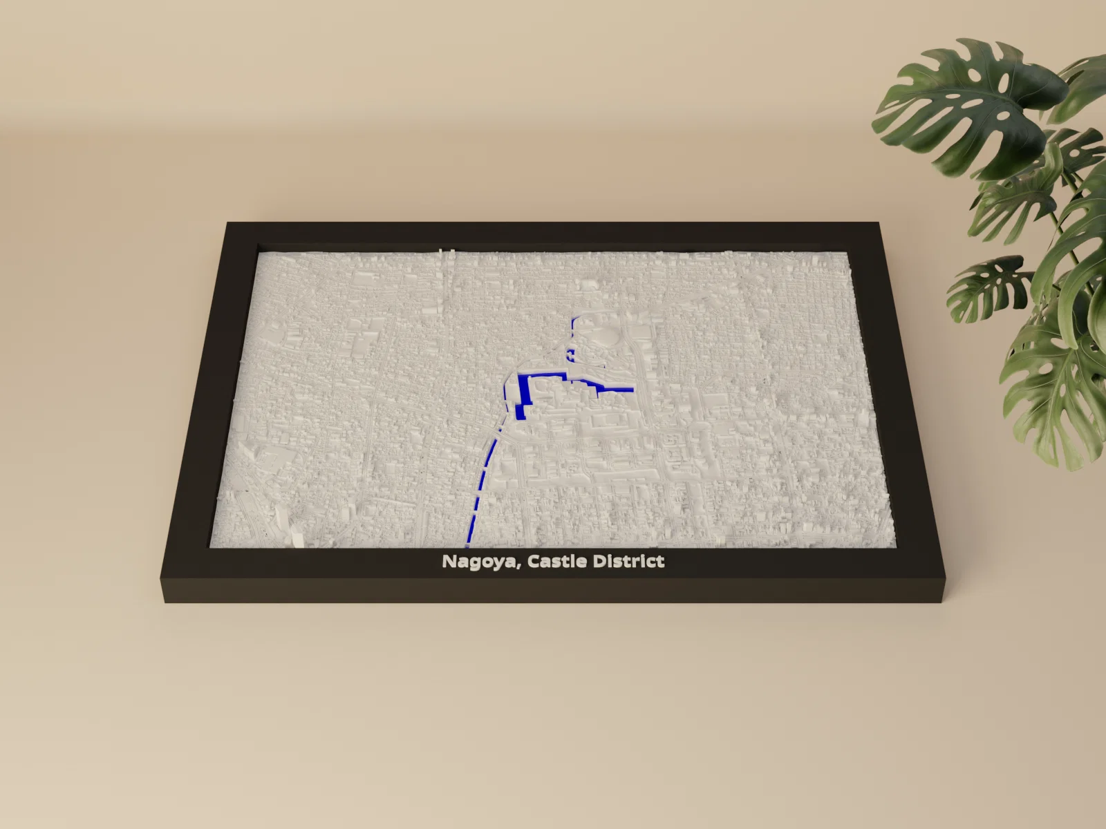 Bắt trọn vẻ đẹp cảnh quan đô thị của Nagoya, Castle District với phiên bản mô hình địa hình thu nhỏ này! Mẫu 3D này tái hiện khu vực địa lý quanh tọa độ 35.186, 136.899 (LatLng).
