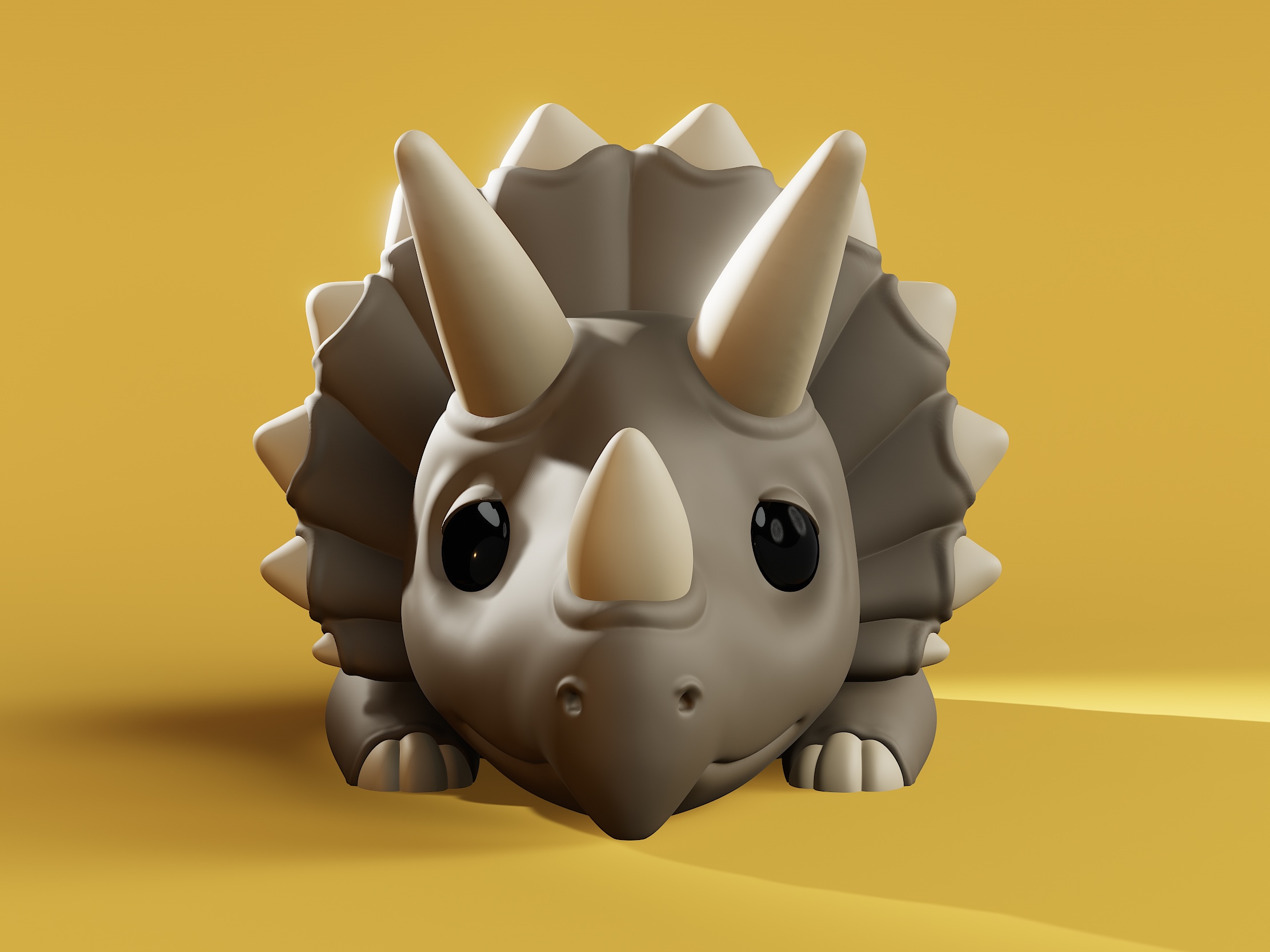 Mẫu Triceratops Spike với vẻ mặt buồn dễ thương vì không ai chơi cùng. Tải về để in 3D và “làm bạn ấy vui lên”. Phù hợp đặt trên bàn làm việc hoặc bổ sung vào bộ sưu tập dinosaur tiền sử.