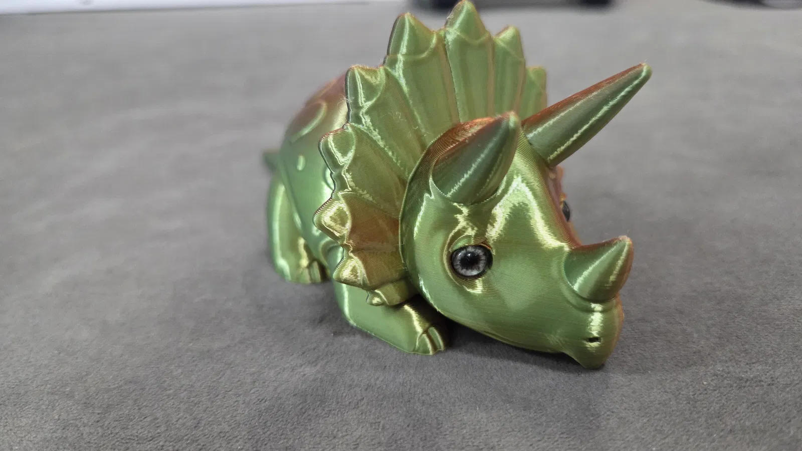 Mẫu Triceratops “buồn” của 3DMDesign nay đã tương thích mắt kính 6mm. Có kèm file 3mf; lỗ mắt sẽ hiện sau khi slice. In dễ, không cần supports hay brim. Kèm link mua glass eyes và thông tin PLA đã dùng.