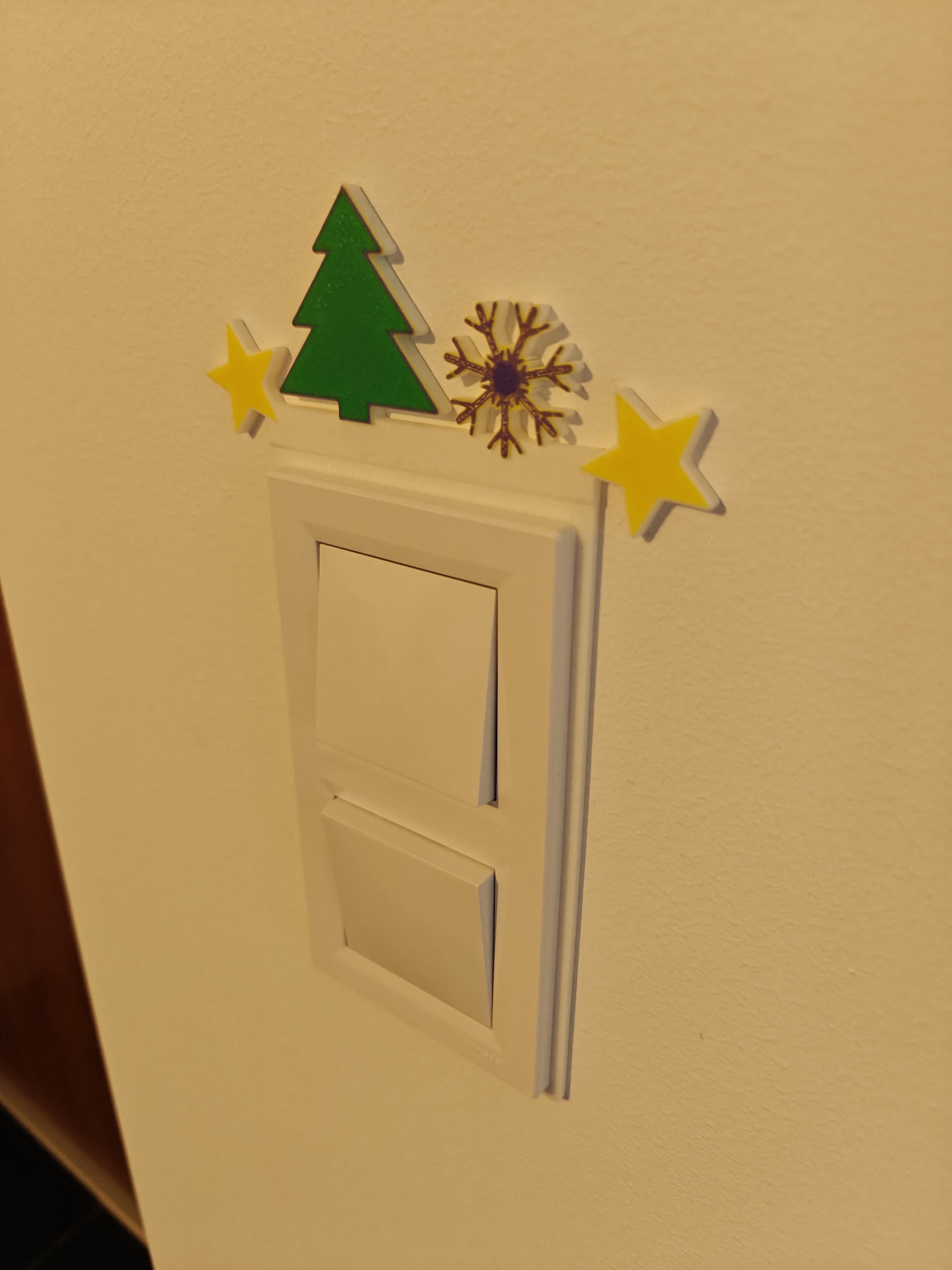 Mẫu trang trí cho công tắc đèn Schneider ASFORA 2Fach (AMS), giúp làm đẹp mặt công tắc theo phong cách decor/Noel. Phù hợp để in 3D và lắp lên công tắc Schneider Electric ASFORA.