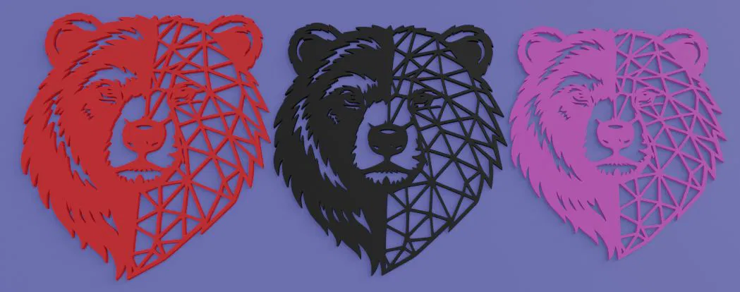 Mẫu “Bear and Art” mang phong cách trang trí nhà ở chủ đề thiên nhiên với hình gấu. Thông số in gợi ý: bed 60°C, nozzle 210°C, speed 50, layer 0.2 mm.