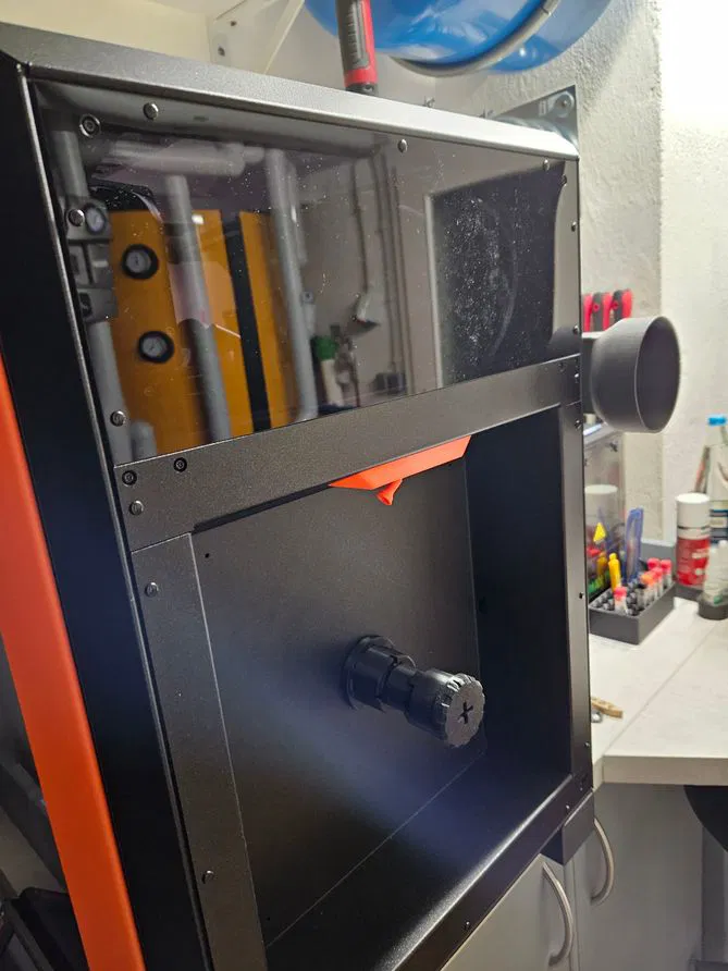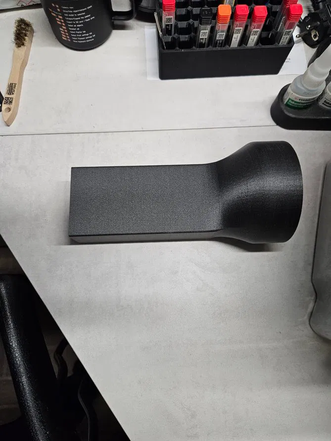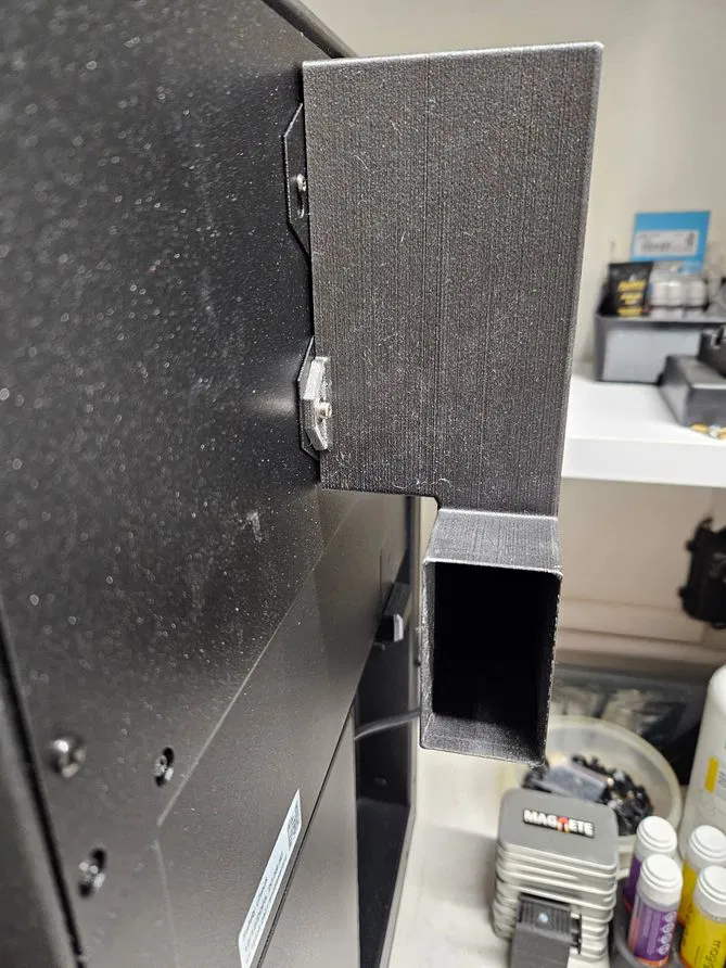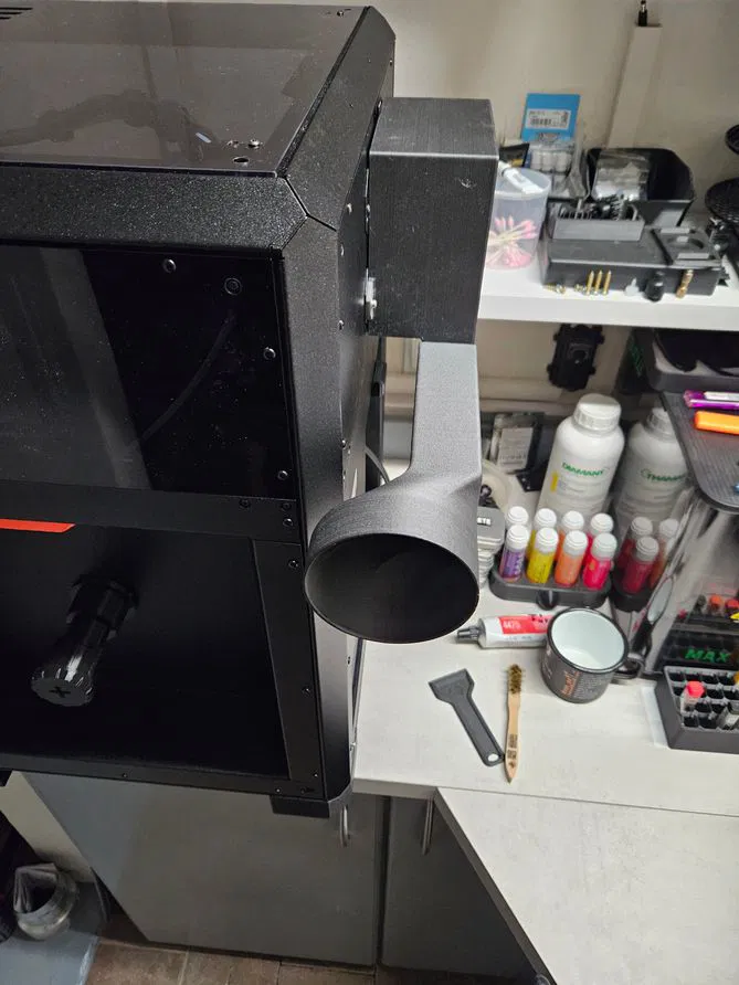 Phụ kiện cho hệ thống lọc nâng cao Core One/Core One L, dùng để dẫn khí thải ra hông vào ống xả 100mm. Cần 2 vít M3x8mm; in PETG CF (10% sợi carbon), các phần lắp khít.