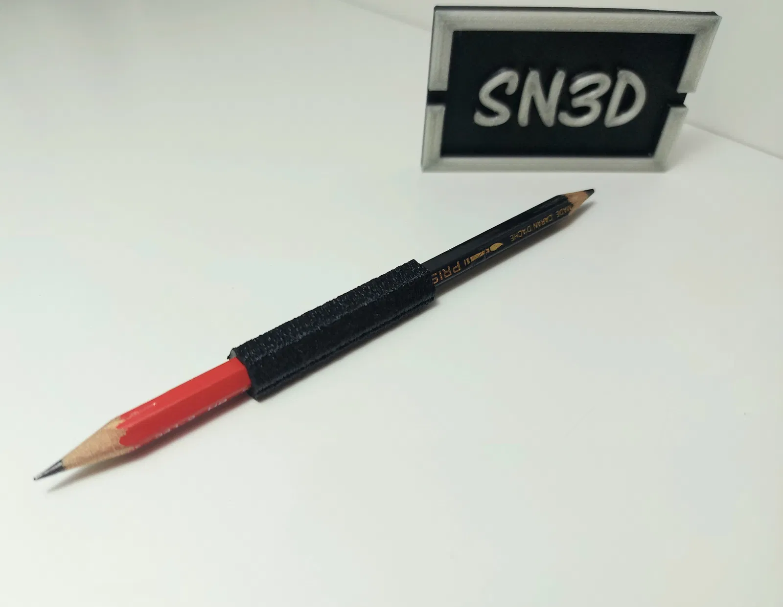 Stiftverlängerung giúp nối dài bút màu/bút chì ngắn để dễ cầm hơn. Bề mặt Fuzzy Skin tăng độ bám; có thể cắm 2 bút trước/sau. Khuyến nghị in PETG, PLA cần test. Bên trong có rãnh giúp giữ bút chắc hơn.