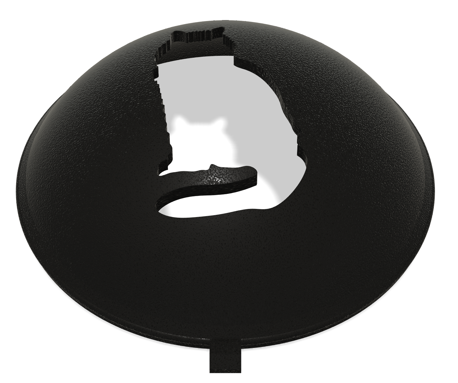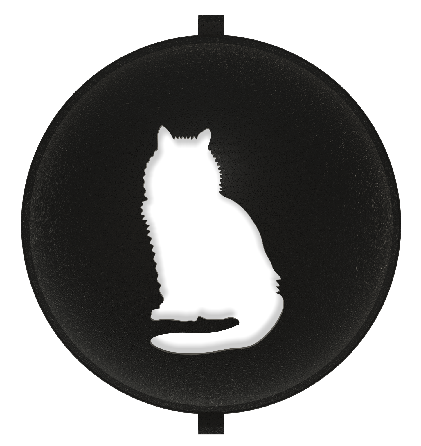 Miếng insert stencil hình mèo (V2) dùng kèm Golf Ball Holder V2a,b & V3. Có phần nối dài để gài vào rãnh của khay giữ bóng, giúp chuyển logo/đường kẻ lên bóng golf chính xác hơn.