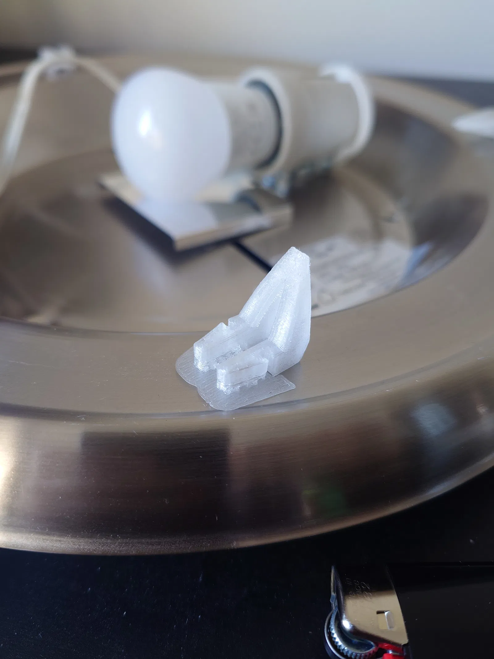 Nên in ít nhất bằng PETG vì mình lo hiện tượng creep đặc trưng của PLA có thể làm kẹp bị dão theo thời gian và rớt đèn. Nếu bạn gặp vấn đề bám lớp (layer adhesion) ở chỗ hai chân gặp nhau, thử tăng nhẹ nhiệt độ in (+5°C) hoặc chuyển sang PCTG (anh em “xịn” hơn của PETG).