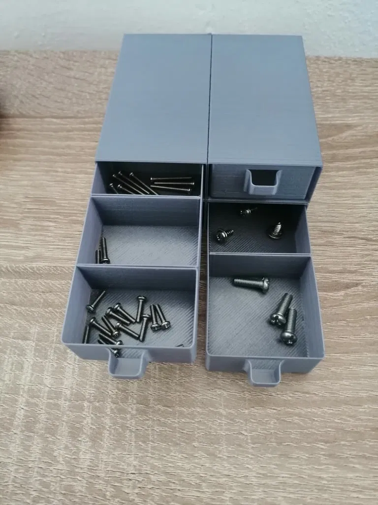 Các ngăn kéo sửa đổi cho https://www.thingiverse.com/thing:2857697. Ngăn kéo phân chia cho bu lông nhỏ hơn và đai ốc.