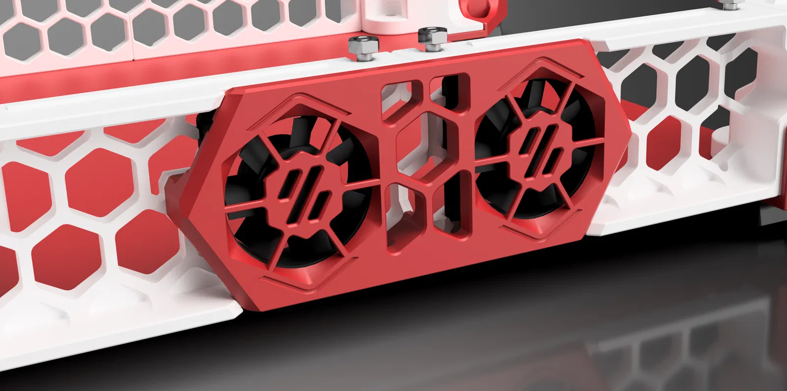 Gắn 2 x quạt 3010 axial tùy bạn chọn (nhớ để dây hướng vào nhau để đi dây ra giữa)