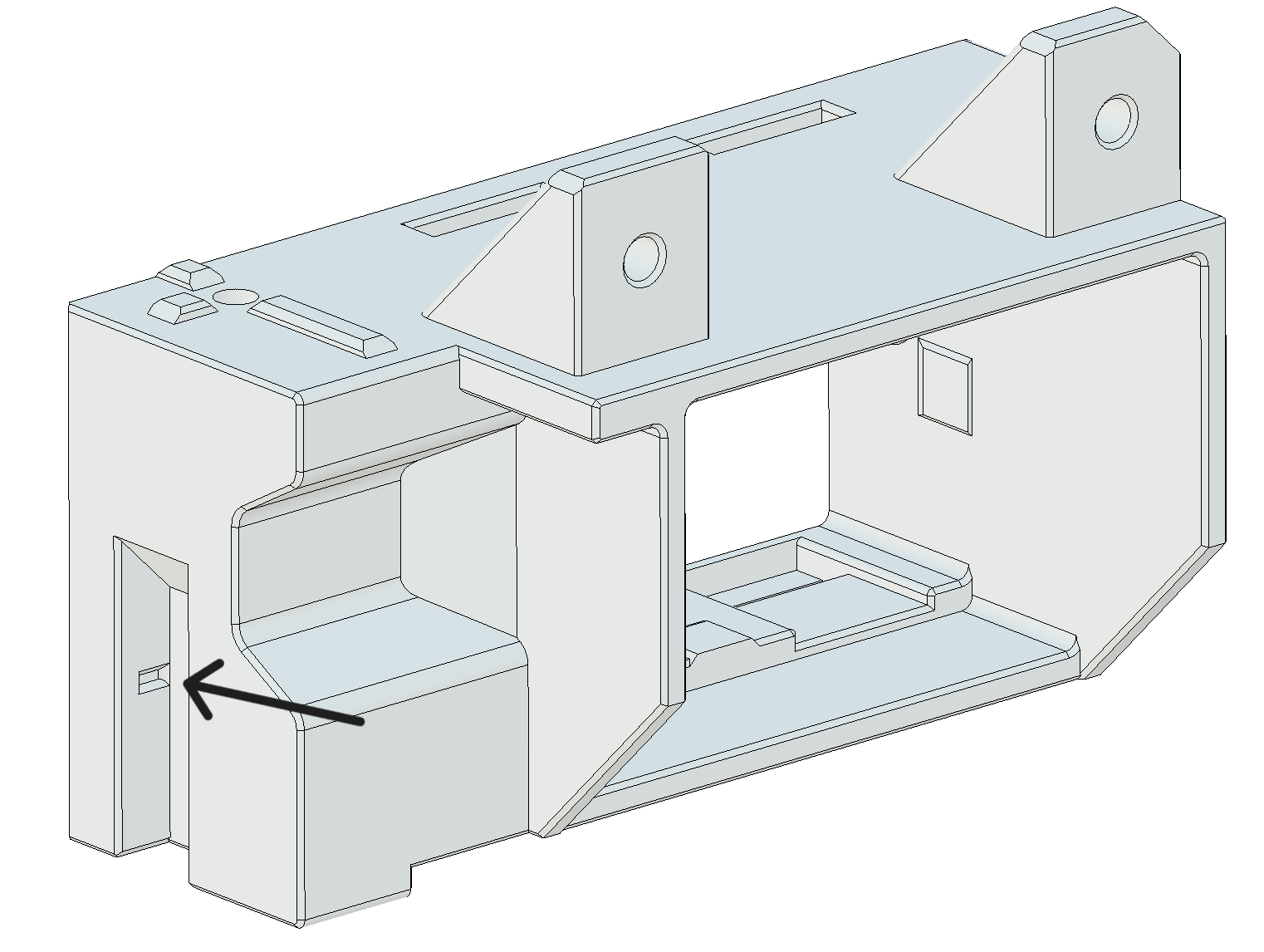 Vì vậy phần này sẽ dùng một breakaway clip trên Extended Foot, bấm (click) vào đúng vị trí trên Mains Inlet Foot như đánh dấu trong hình.