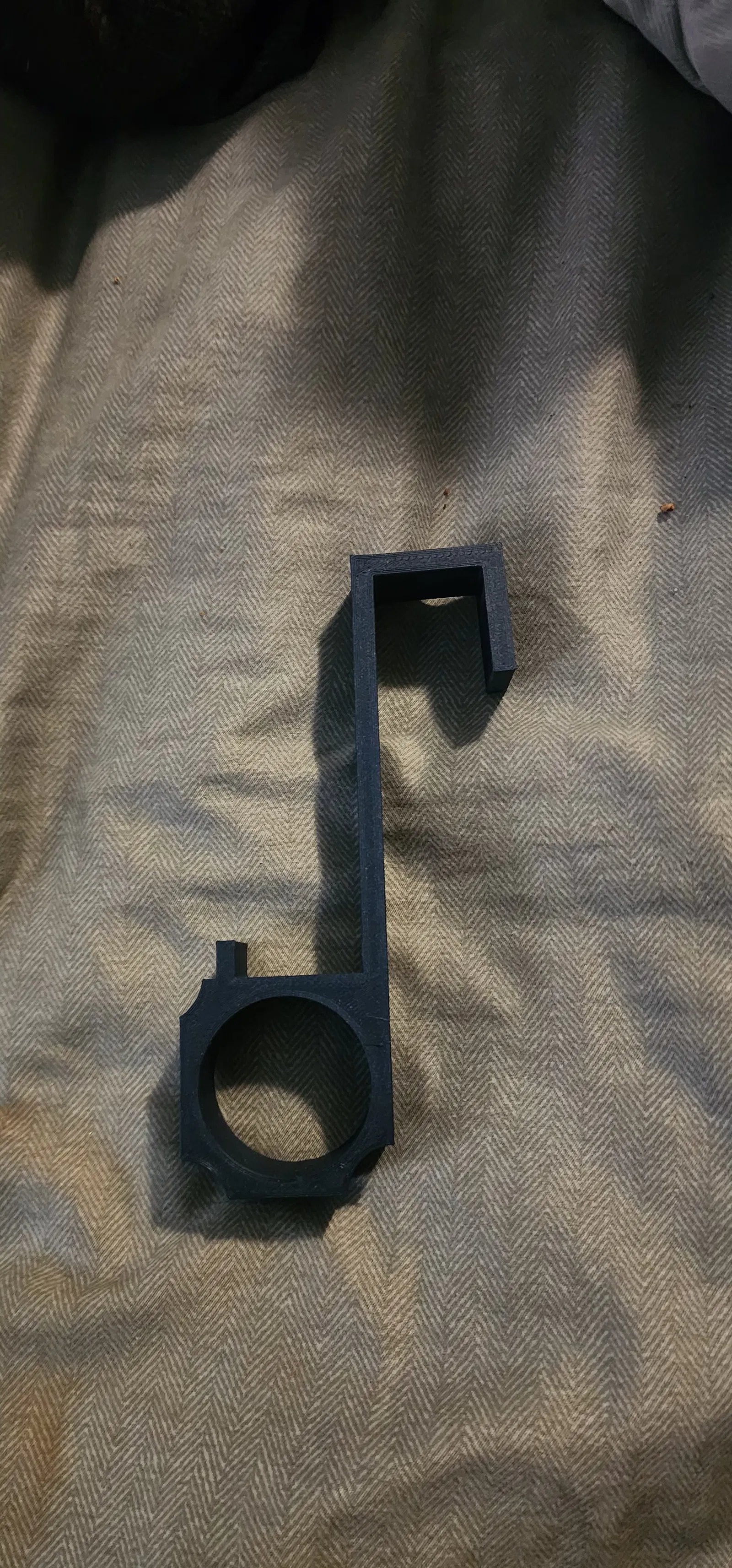 Móc thiết kế theo yêu cầu để gắn lên đầu giường, giúp treo và giữ ống cùng mặt nạ CPAP gọn gàng, hạn chế vướng khi ngủ. Mẫu được thiết kế bằng Tinkercad và in trên Elegoo Neptune 4 Max.