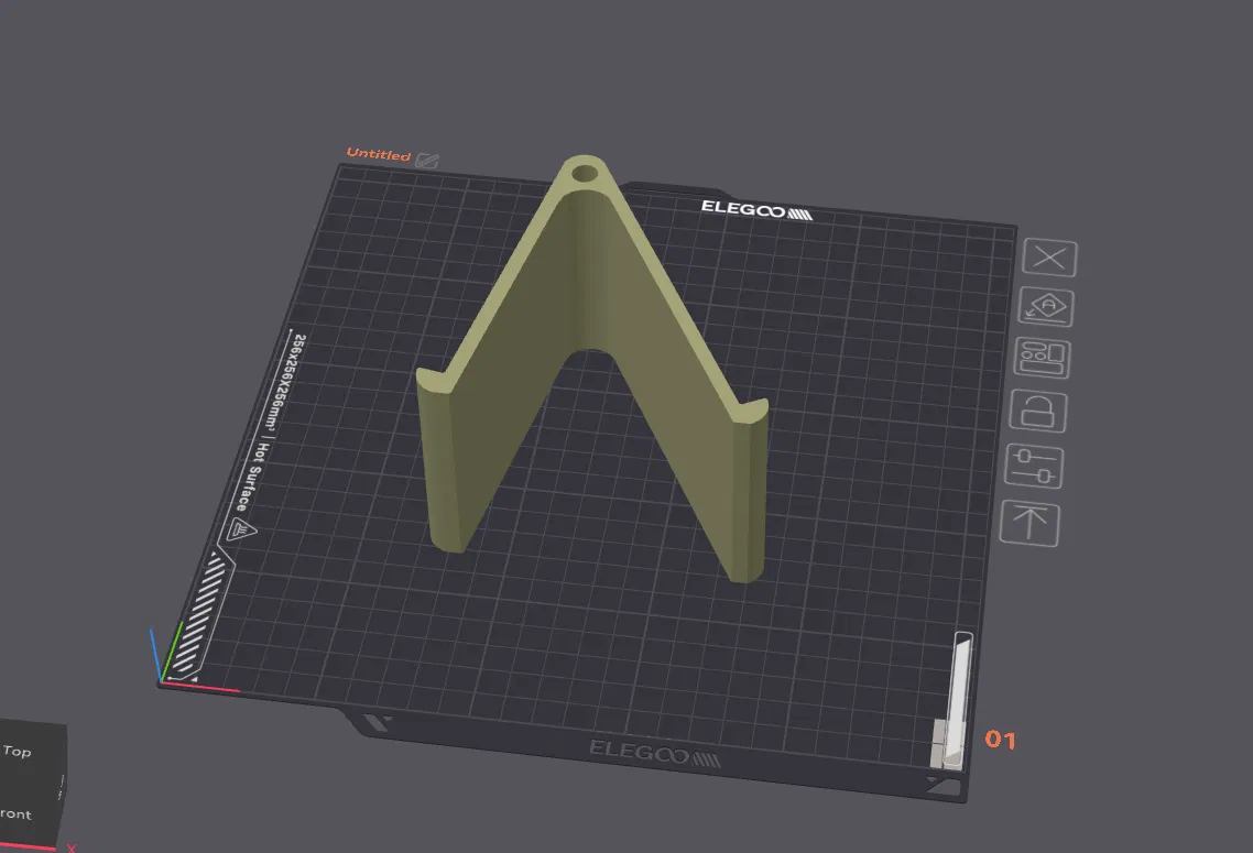 Mẫu kệ đỡ điện thoại dạng nghiêng, thiết kế đơn giản và dễ in. Gợi ý in nằm nghiêng, layer height 0,2 mm, dùng Brim để bám bàn in tốt hơn; kích thước X/Y cố định, Z chỉnh theo bề ngang máy.