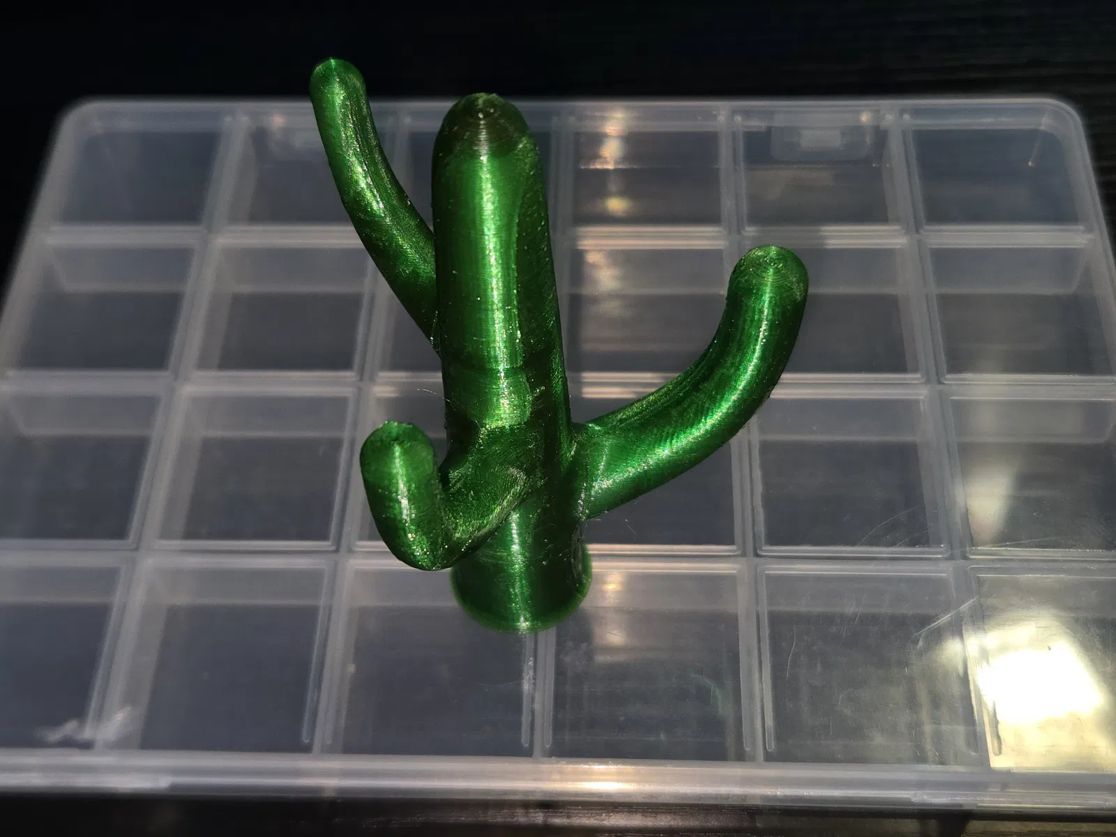 Khay trang sức hình xương rồng (Cactus Jewlery Dish) dùng để cất nhẫn và các món trang sức nhỏ gọn. Mẫu được in bằng PETG với Layer height 0.2mm, phù hợp đặt bàn trang điểm.