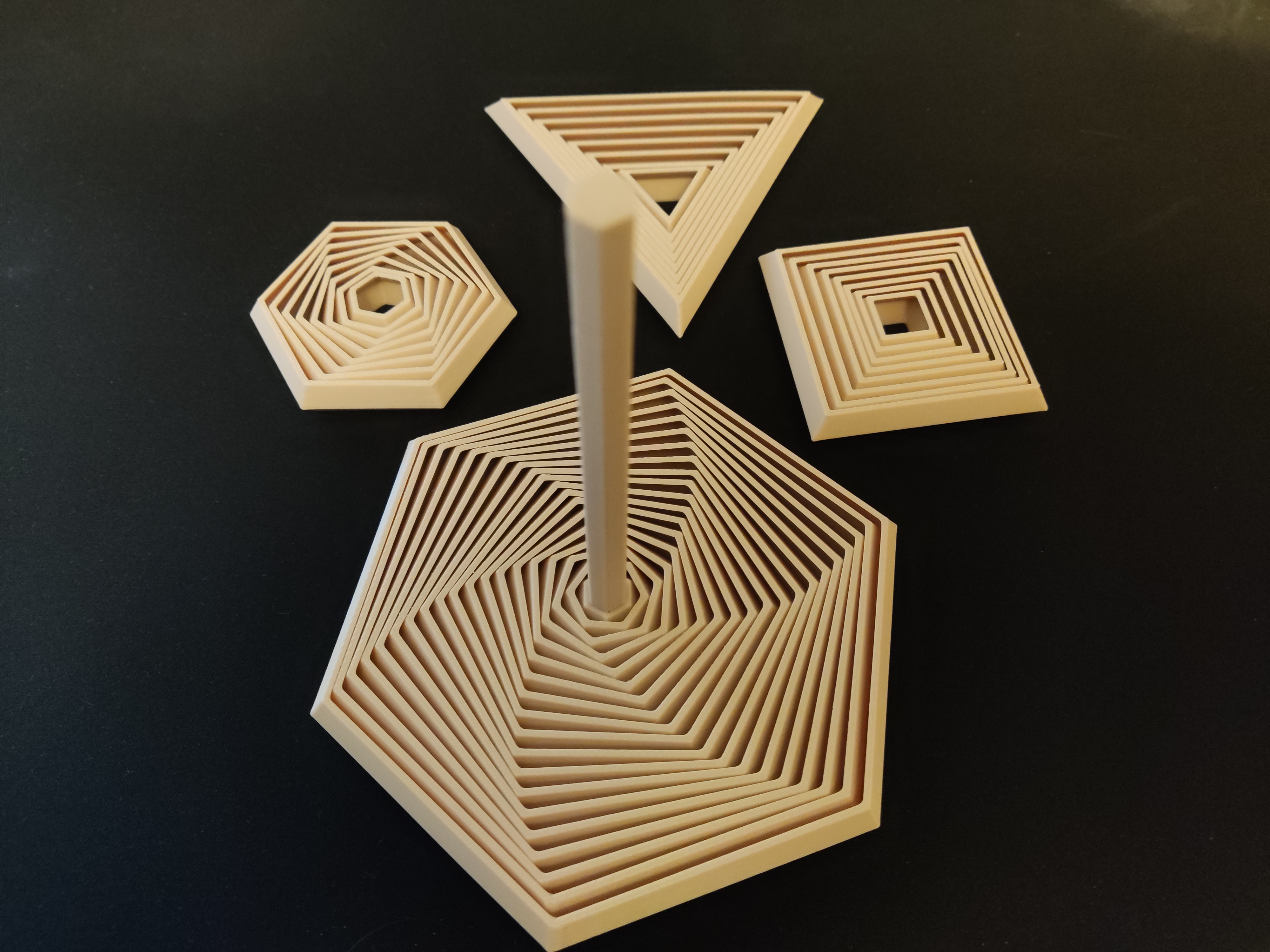 Mẫu polygon fidget parametric tuỳ biến số cạnh N (triangle, square, pentagon, hexagon… đến nonagon). Có tuỳ chọn handle và solid middle, chỉnh được spacing, wall angle, height… bằng FreeCAD.