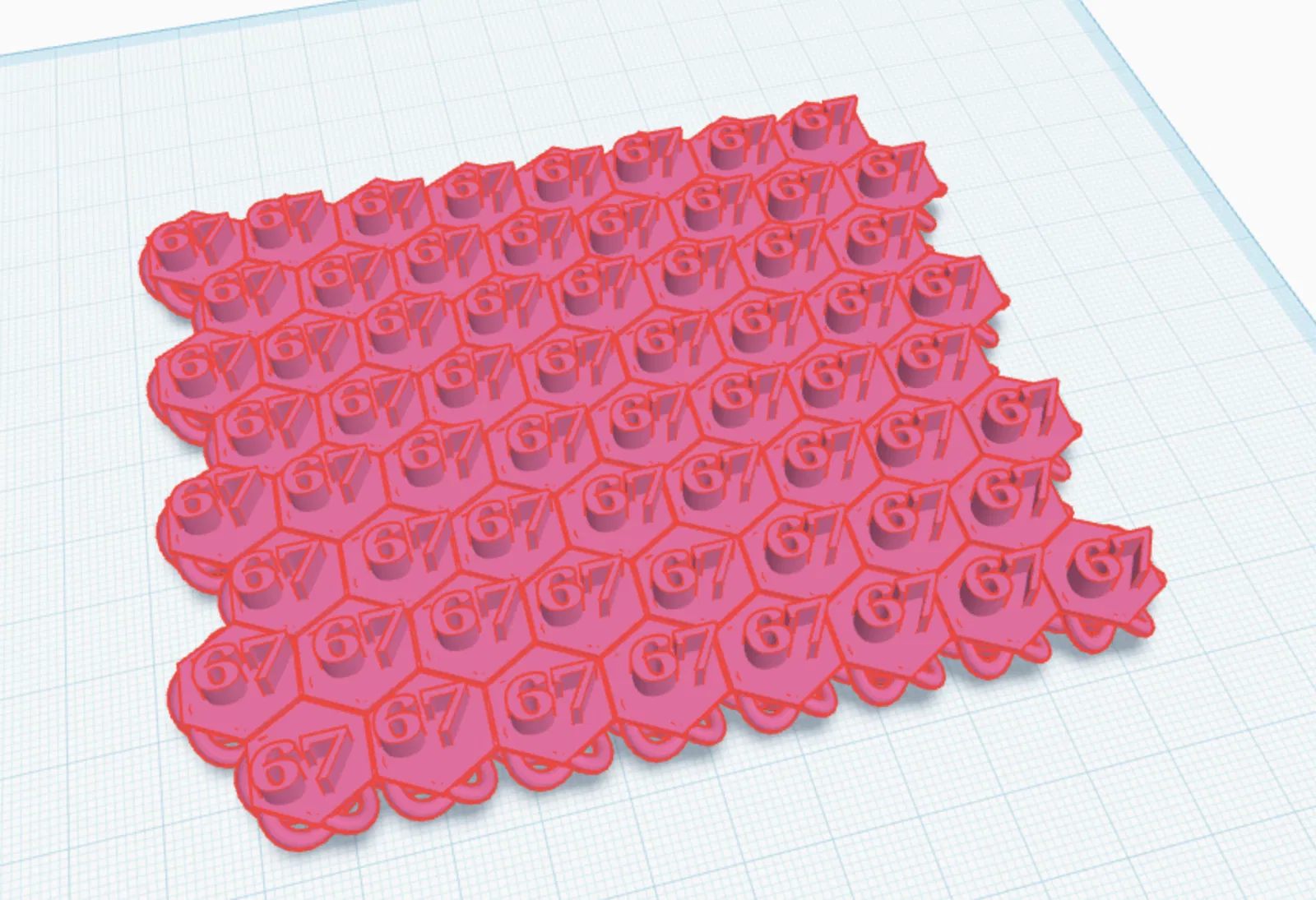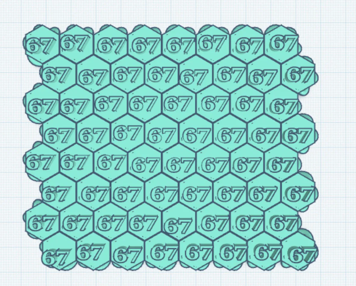 Mẫu “67 fabric!!” là các mảnh vải có in nhiều số 67 lặp lại. Phù hợp để in 3D làm đồ trang trí, đạo cụ, hoặc các chi tiết nhìn “đã mắt”, đúng kiểu satisfying.