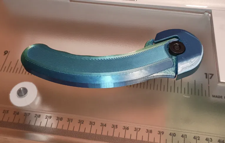 Lưỡi dao được canh giữa theo bề ngang của tay cầm, nên dùng tay trái hay tay phải đều ổn. Bạn cũng có thể cá nhân hoá chi tiết bằng cách thêm tên của mình, hoặc thử các thiết lập “fuzzy skin” trong slicer để tăng độ bám.