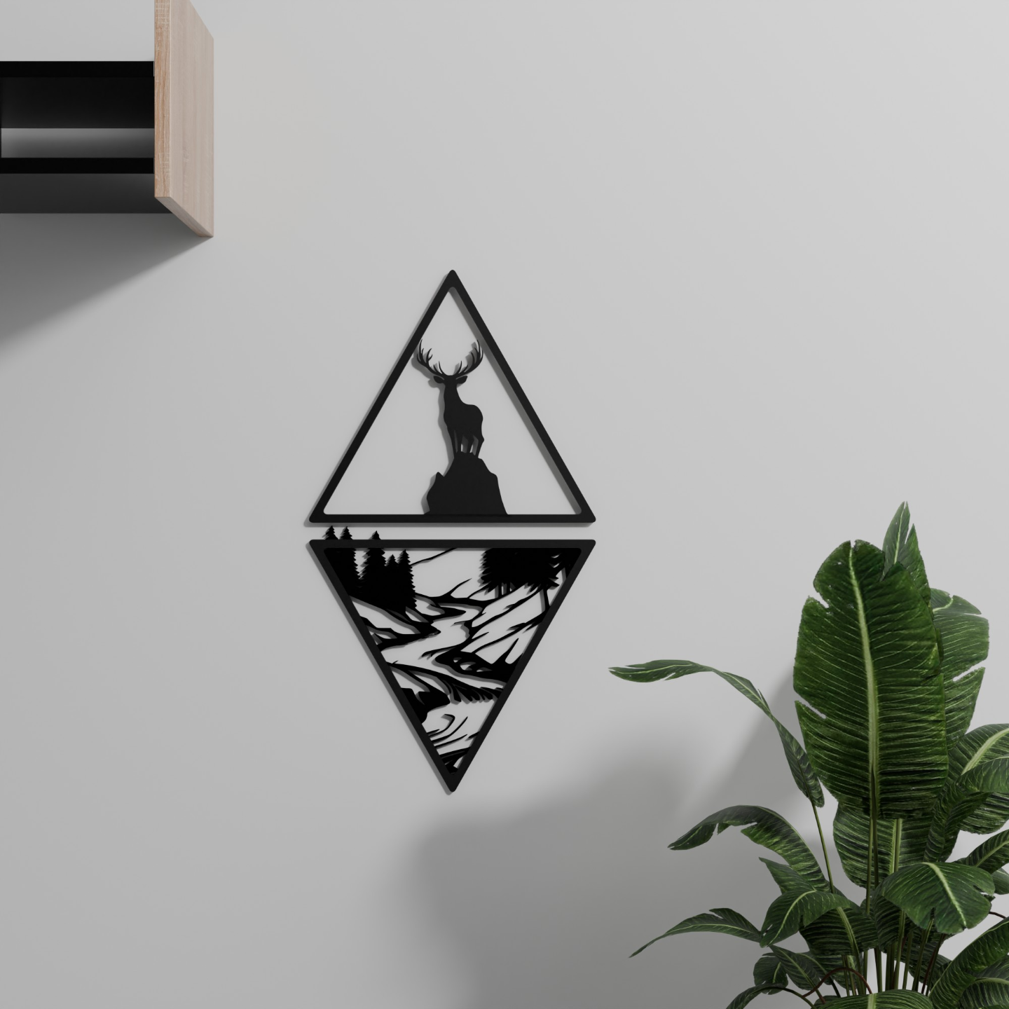 Mẫu tranh treo tường Nai và Dòng Sông dạng 2D đơn giản, in nhanh và dễ. Được canh hướng để lấy vân từ build plate cho bề mặt hoàn thiện đẹp hơn. Gắn lên tường bằng blue tack, không làm hư tường.