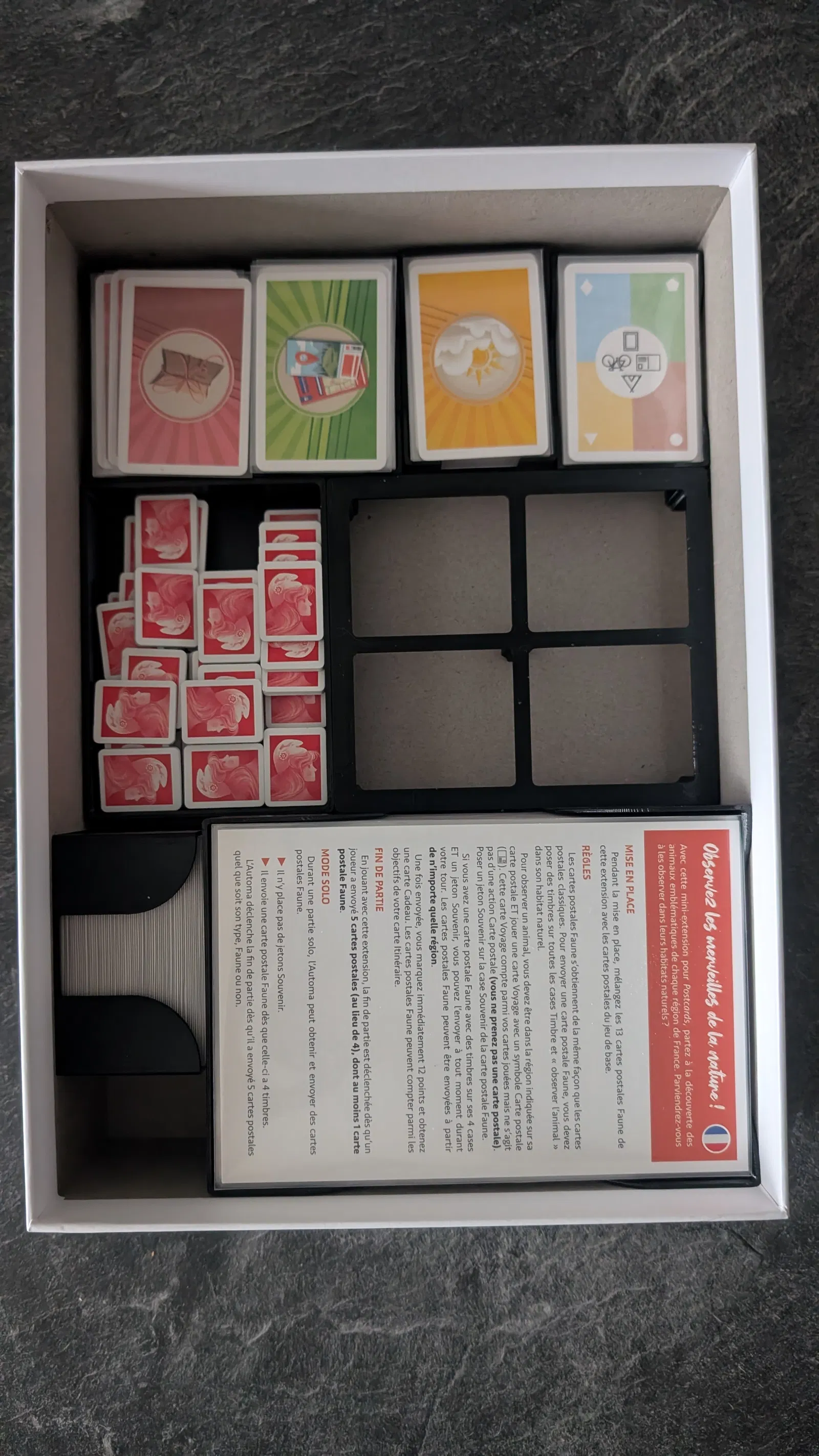 Mình xin giới thiệu một insert cho game "POSTCARDS" gồm đầy đủ tất cả expansion, các thành phần deluxe của game, và cả bài đã bọc sleeve.