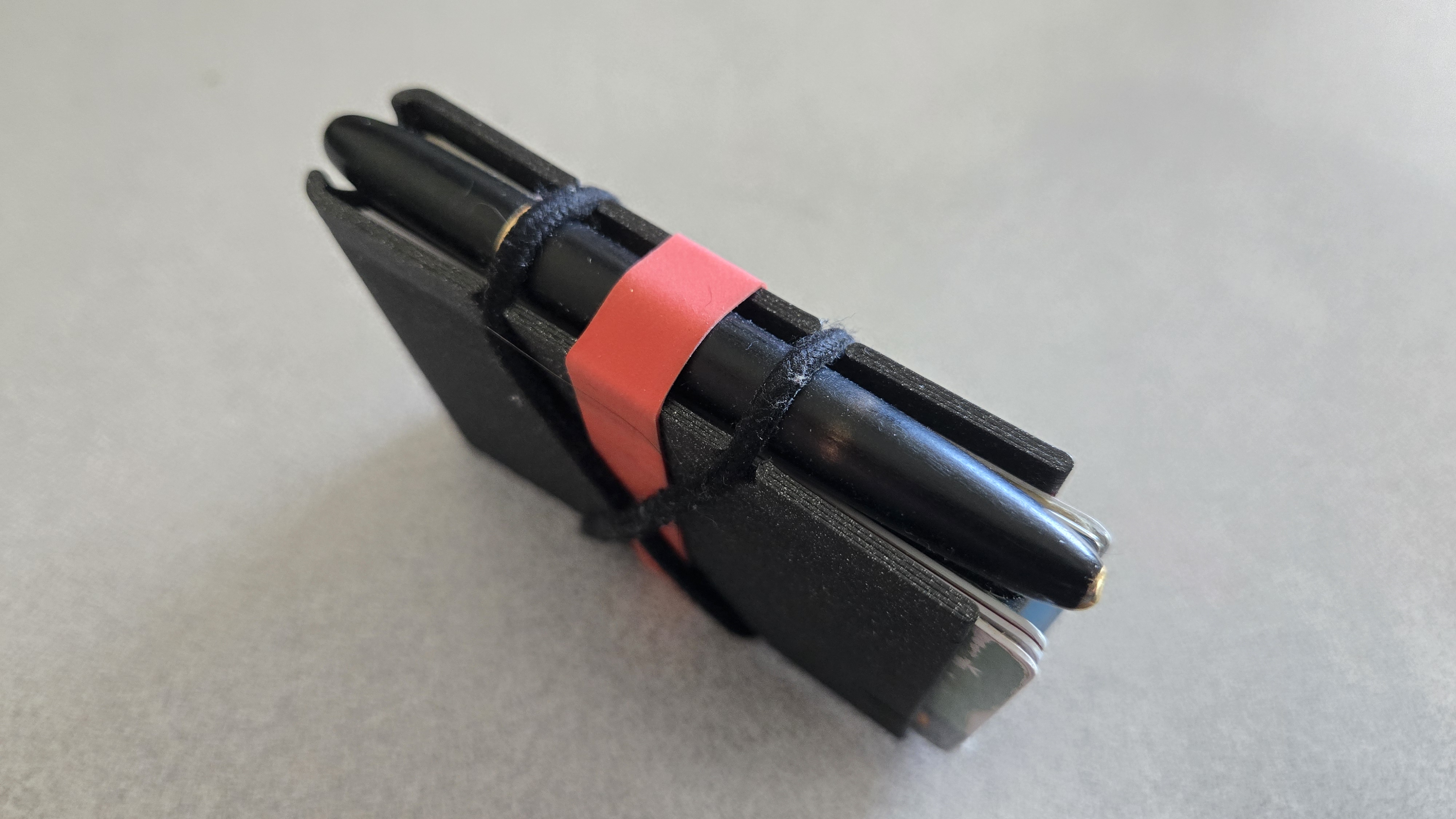 Cho phép mang theo trong túi quần 9 món hoặc hơn có kích thước thẻ tín dụng, kèm một cây bút Fisher Space Pen (Bullet).