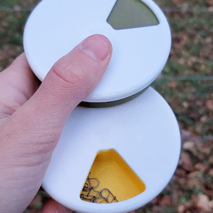 Hộp lưu trữ phụ kiện câu cá dạng xoay, giúp sắp xếp gọn các món tackle nhỏ như lưỡi câu, chì (weights), swivels, split rings, beads… Gài nắp là dùng ngay. In PLA, không cần supports.