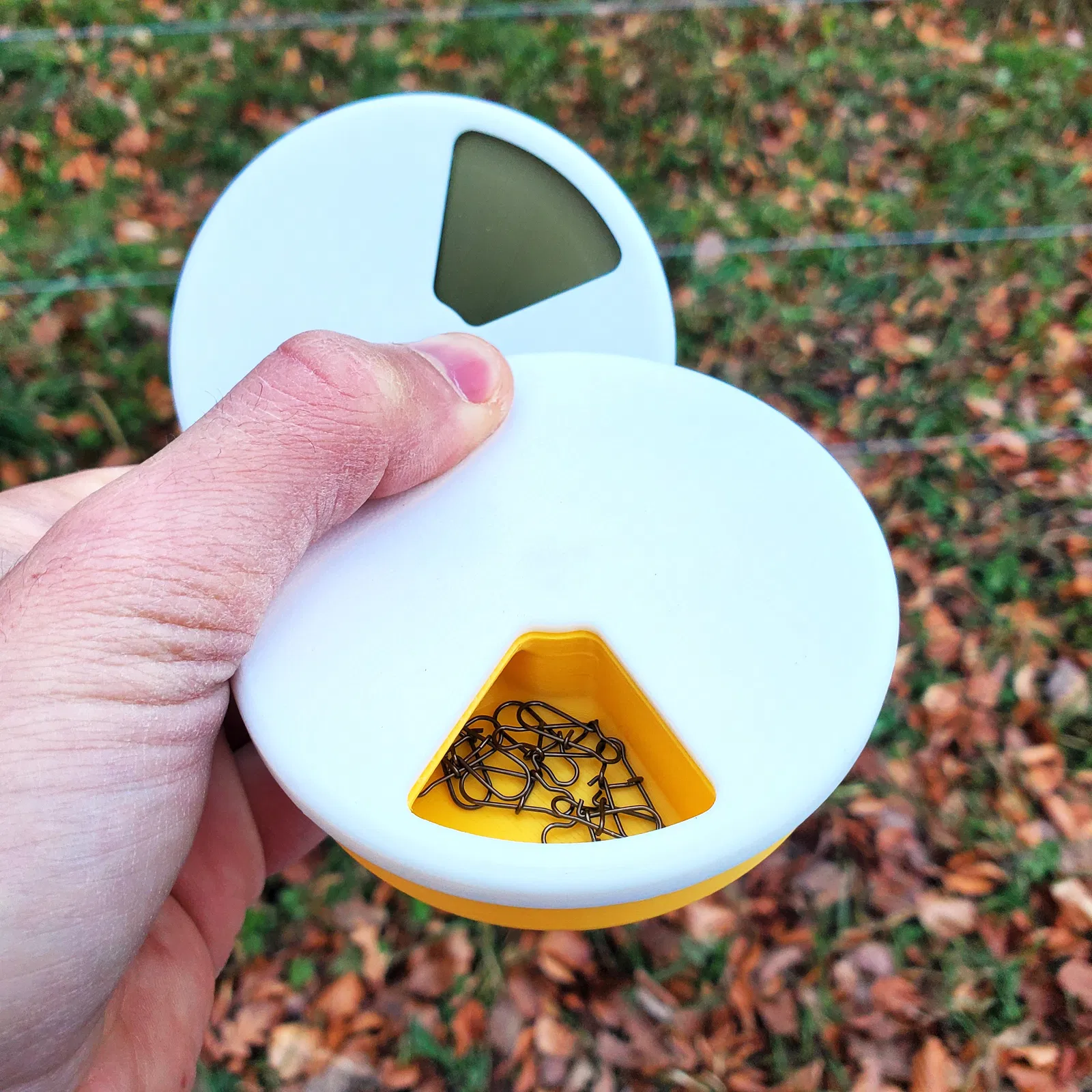 Hộp này là một cách thông minh và gọn nhẹ để cất các món đồ câu cá nhỏ như lưỡi câu, chì (weights), khóa nối (swivels), vòng chẻ (split rings), hạt (beads) và nhiều thứ khác. 🎣