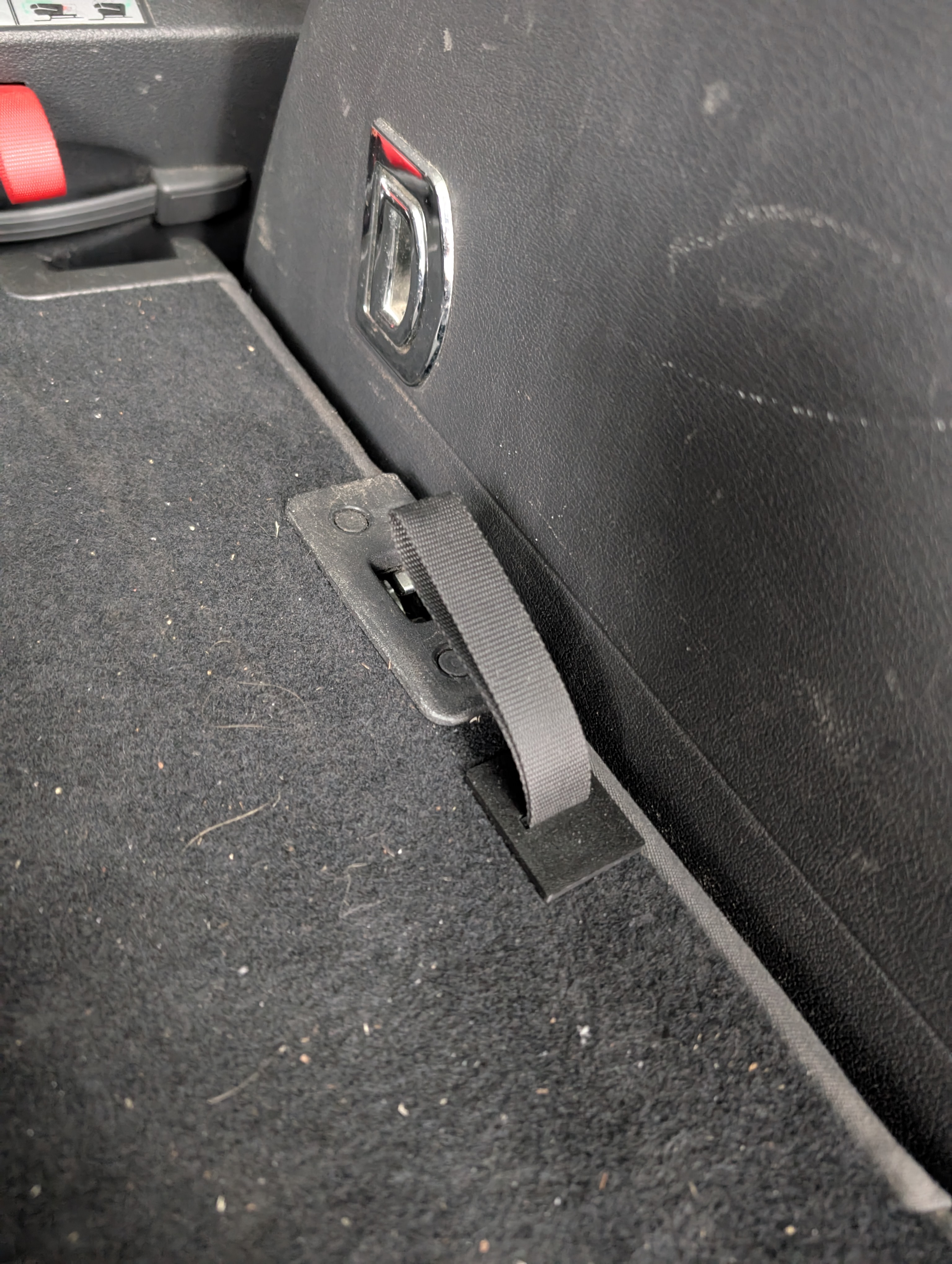 Cách lắp: luồn cái loop xuyên qua chi tiết nhưng đừng bấm khớp vào. Sau đó luồn phần “đầu” của loop vào phía trong ghế trước, gài (clip) chi tiết in 3D vào, rồi kéo ngược đầu loop lại để bấm nó vào chi tiết đã in.