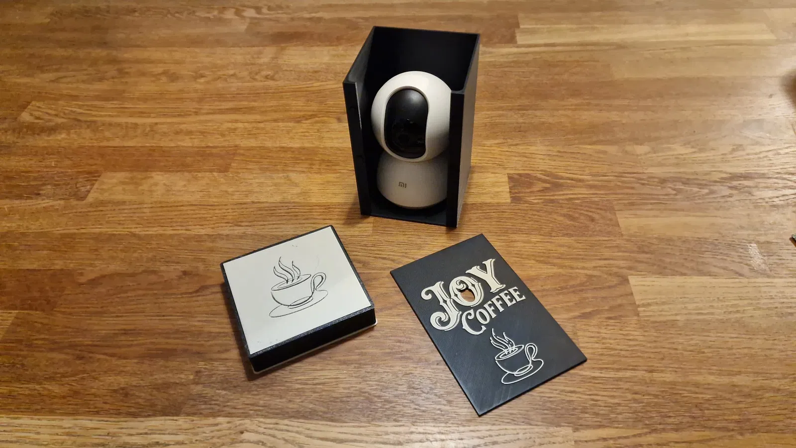 Stealth Coffee Canister là một món decor kiểu “functional” được thiết kế để hòa vào không gian trong nhà, giúp tăng tính an ninh mà không mang cảm giác “lâm sàng” như camera truyền thống. Ban đầu nó được thiết kế cho Xiaomi Mi 360, nhưng phần housing này cũng nên tương thích với nhiều dòng camera trong nhà loại nhỏ khác. Nhờ phối màu đen/trắng tương phản cao, ống kính camera được ngụy trang khéo trong chữ "O" của logo phía trước. Chỉ cần đứng cách một đoạn ngắn thôi là phần lens tối màu gần như lẫn hẳn vào nền đen của canister, người không để ý kỹ sẽ rất khó phát hiện.