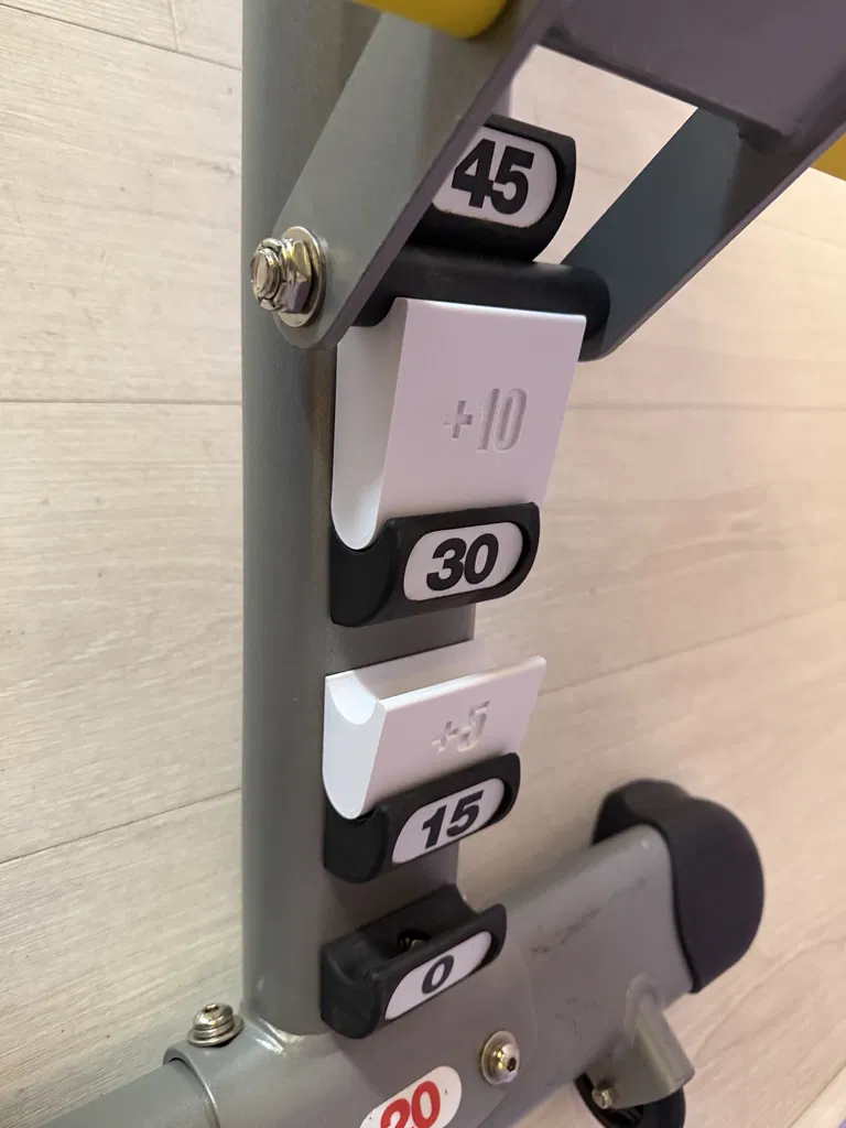 Bộ Angle Shims cho ghế tạ Hoist HF-5165 giúp chỉnh góc nằm giữa các nấc mặc định (ví dụ 40°), gồm bản +5° và +10°. Có hộc nam châm 15×2mm tuỳ chọn, in PLA không cần supports.