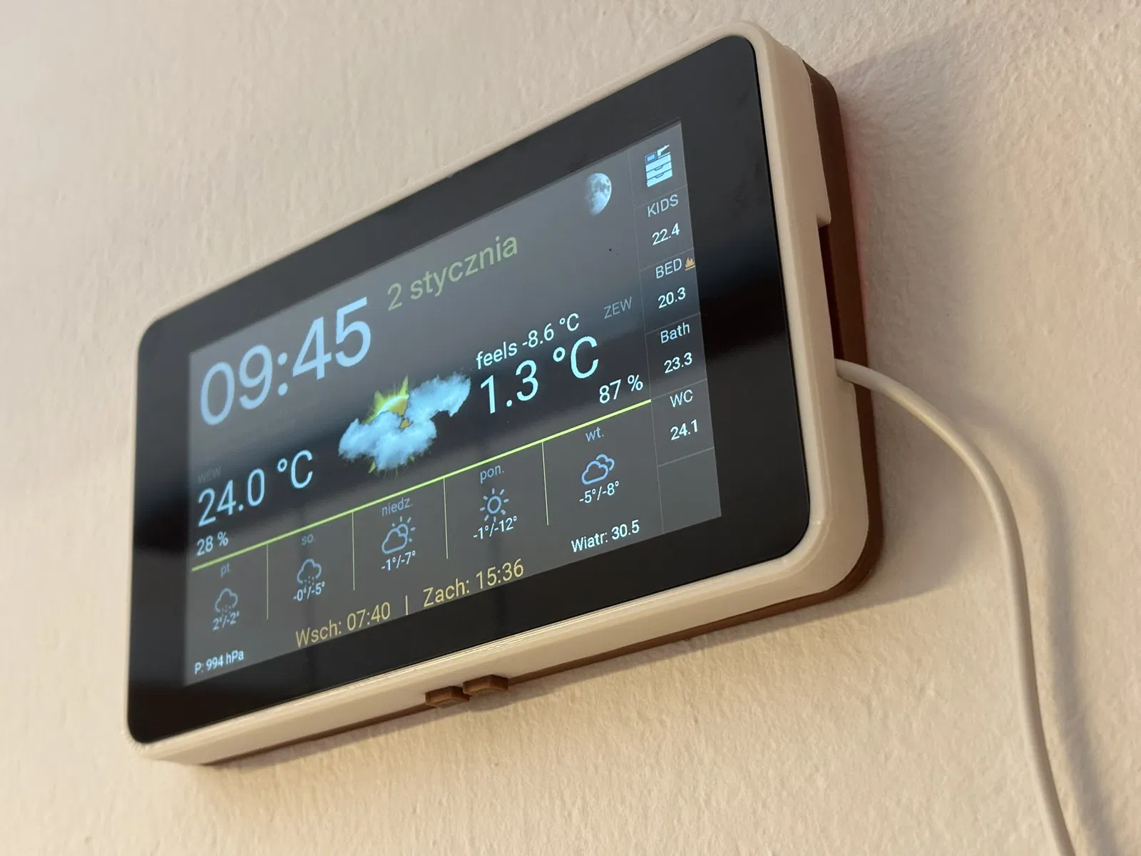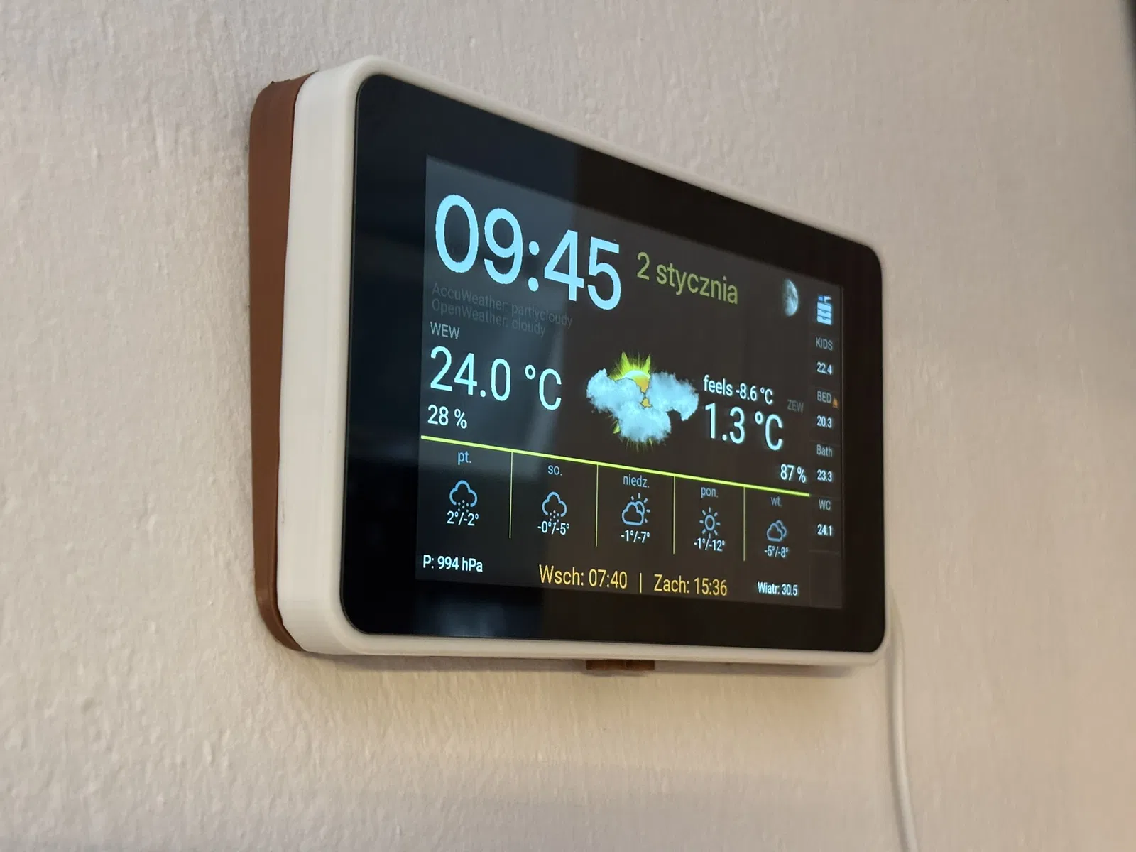Vỏ bảo vệ chống bụi cho LCD-7B-ESP32-S3-Touch dạng gắn tường, thiết kế nghiêng 5°. Phần công tắc vẫn thao tác được từ phía dưới, gọn gàng và dễ lắp đặt.