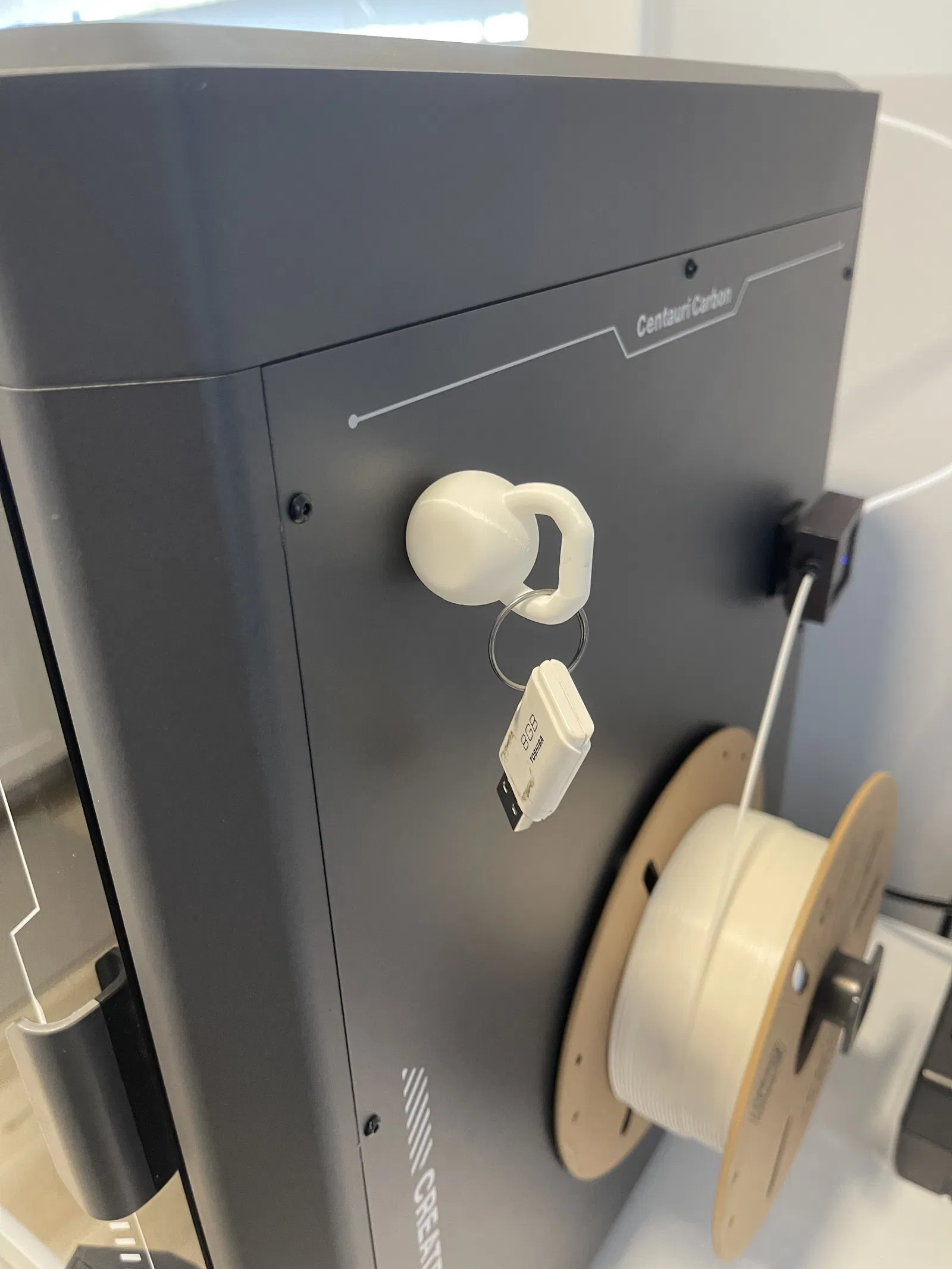 Bản remix từ móc khóa hình kettlebell để làm nam châm tủ lạnh. Mình chủ yếu gắn nó vào USB flash drive để treo ở hông máy Centauri Carbon bằng cách thêm một hốc nam châm 8x2 ở mặt đáy. File còn lại thì hốc nam châm nằm ở mặt lưng. Khuyến nghị in với tree supports và đặt chi tiết sao cho phần tay cầm hướng lên. Bản in dùng khoảng 4,5 gram filament.