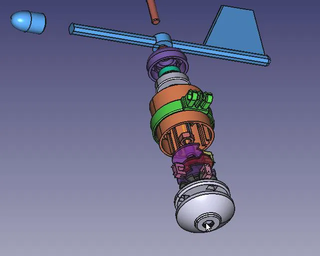 Một PCB nhỏ được gắn ở phần dưới của cánh gió để dễ đi dây trong lúc test và nạp chương trình (lưu ý: chất lượng hàn chỉ mang tính minh hoạ). Dây được luồn qua nắp dưới, và trong dome có lắp đầu siết cáp PG7 (PG7 cable gland) để chống tuột dây.