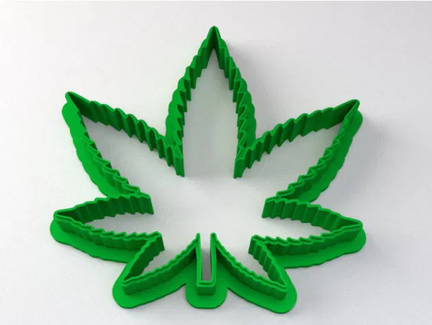 Khuôn cắt bánh quy hình lá cần sa (cannabis) được thiết kế để bánh ít chỗ yếu, dùng thực tế bền hơn. Có 2 biến thể; bản có mép cắt mỏng (1 mm x ~0.5 mm) tối ưu cho in FDM với nozzle 0.4 mm.