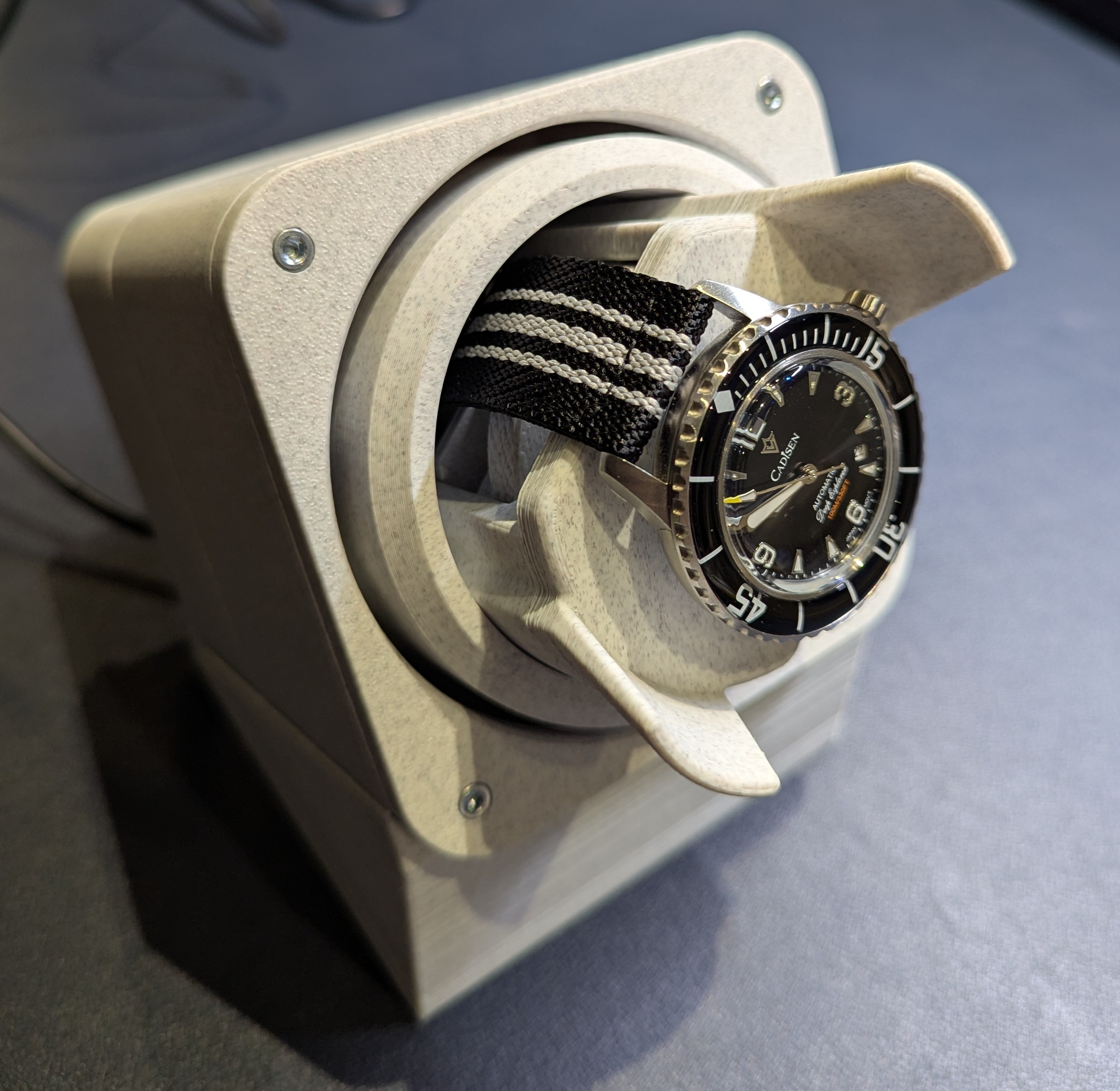 Bản remix Watch Winder sử dụng OSWW winderoo. Có hướng dẫn về nam châm 6x2, brass inserts và ốc M3, kèm link phần electronics/phần mềm, sơ đồ đi dây và hướng dẫn lắp ráp watch mount.