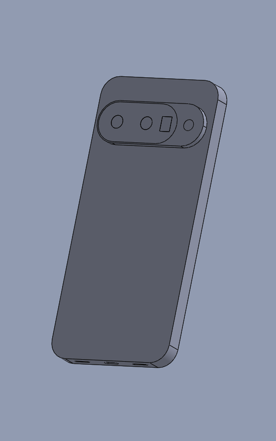 Bản mockup nhanh của Google Pixel 10 mà mình cần gấp để làm Phone Mount cho kính thiên văn, nên có thể sẽ có vài lỗi nhỏ. Tuy vậy, kích thước tổng thể bên ngoài và vị trí cụm camera thì chắc là đúng.