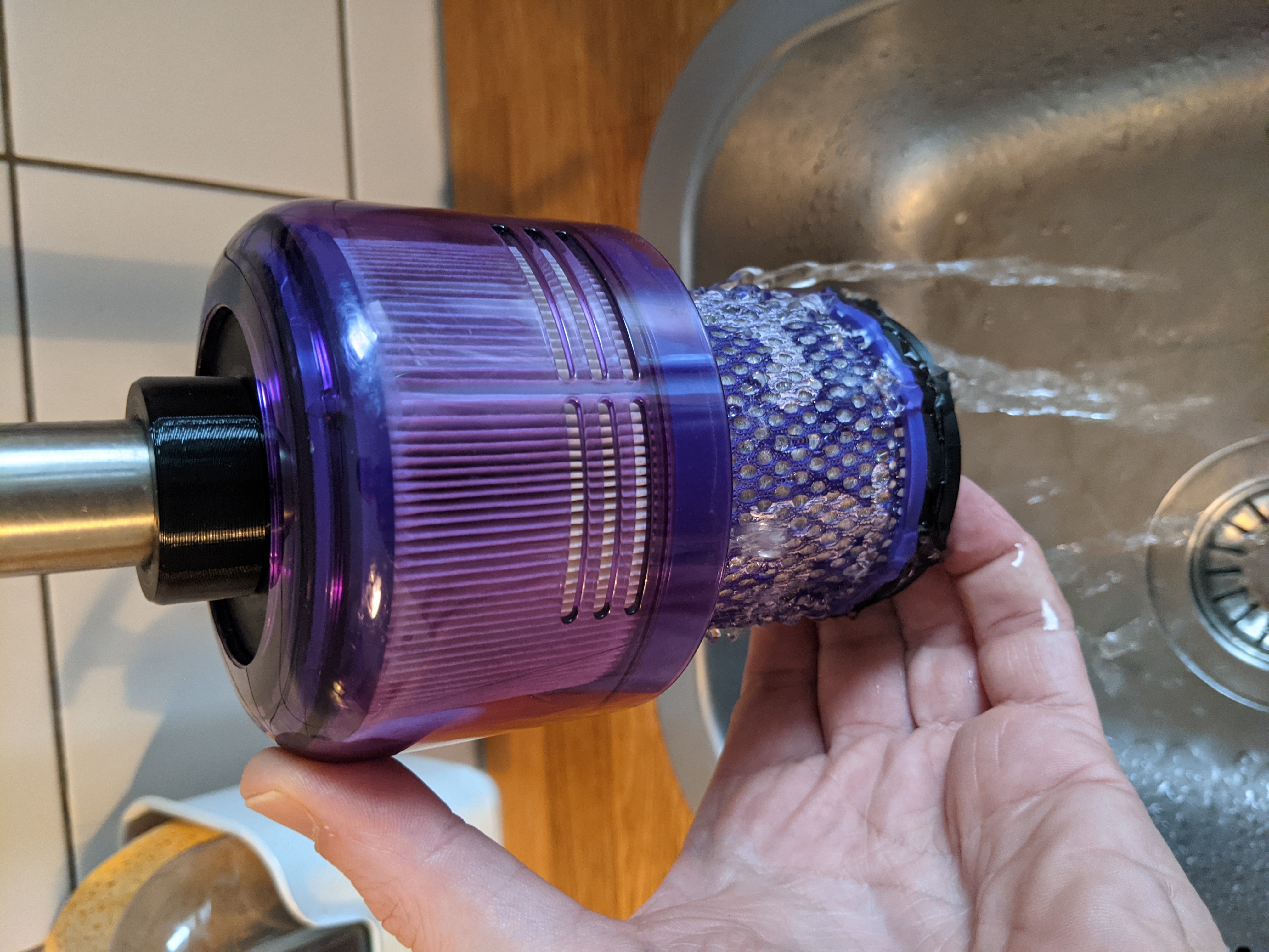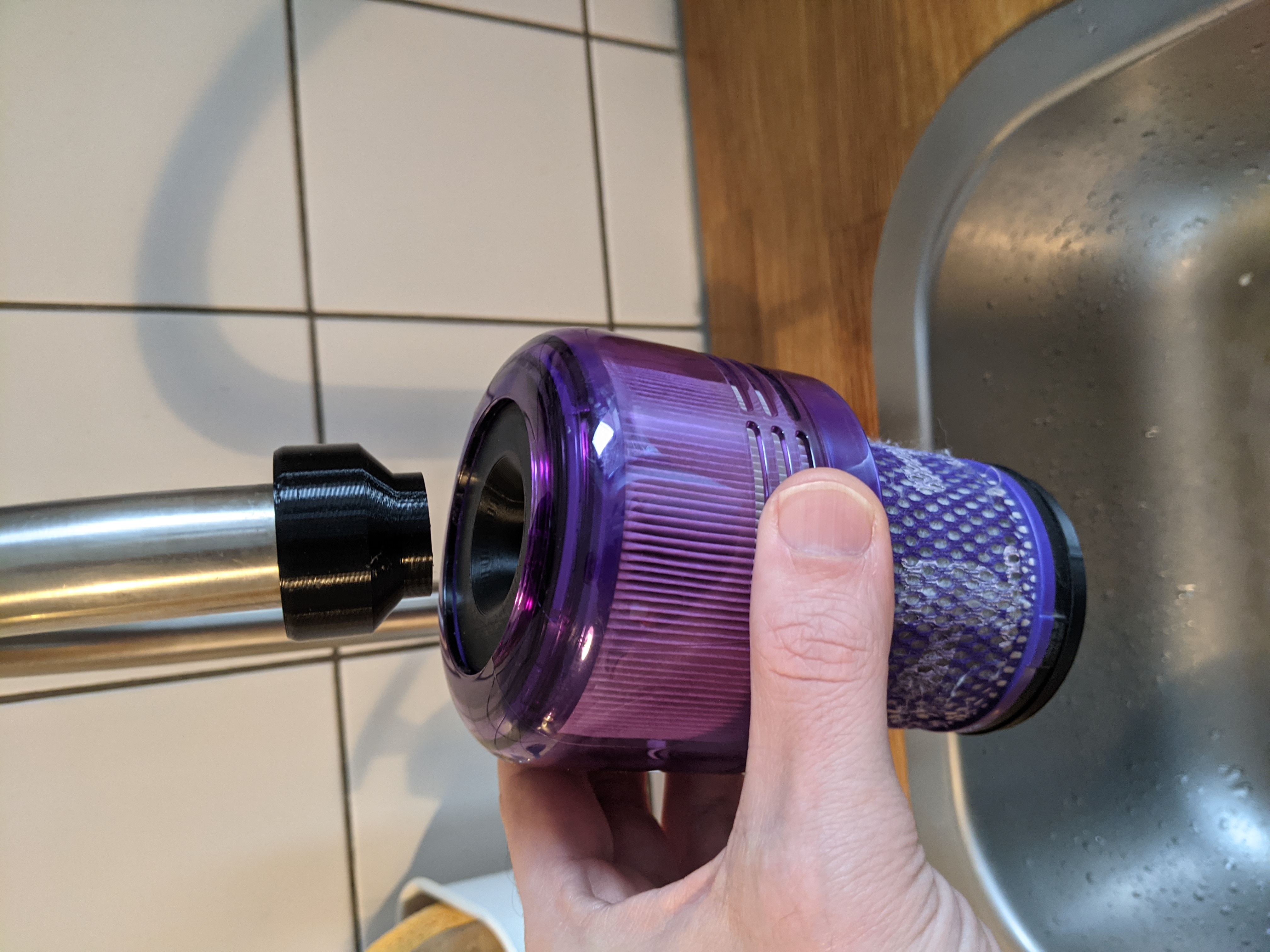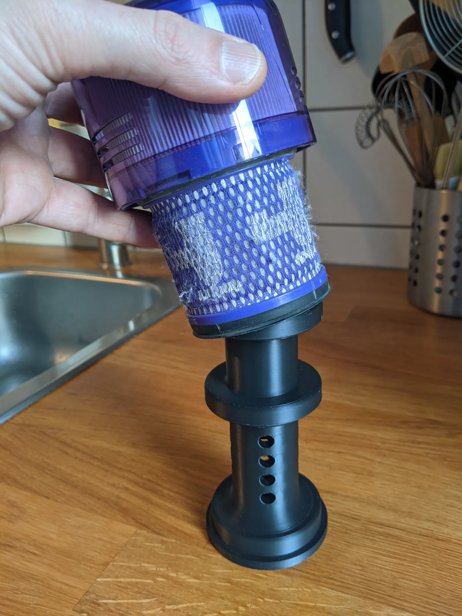 Adapter vệ sinh filter cho Dyson V11 & V15 bằng nước máy, giúp không làm ướt phần giấy của filter. Đi kèm adapter TPU 22mm (bắt buộc). Có thể yêu cầu phiên bản tuỳ chỉnh đường kính khác.