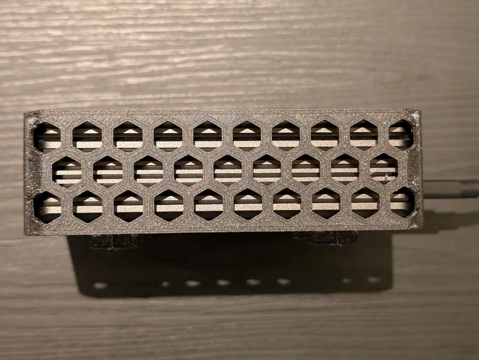 Mẫu giá đỡ (cradle) cho StarTech TB310G2 10GB Thunderbolt 3 Ethernet controller, thiết kế để bắt vít dưới bàn. Một bên mở để trượt adapter vào, dây cáp sẽ giữ thiết bị chắc chắn.