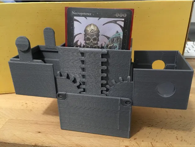 Hộp đựng bài CCG dùng cơ cấu bánh răng để đẩy bộ bài lên. Bản cập nhật redesign đơn giản hơn, có size cho deck 60/100 lá và bản embossed cho người chơi Magic: The Gathering; lắp ráp bằng cart, base, lid và pivot plates.