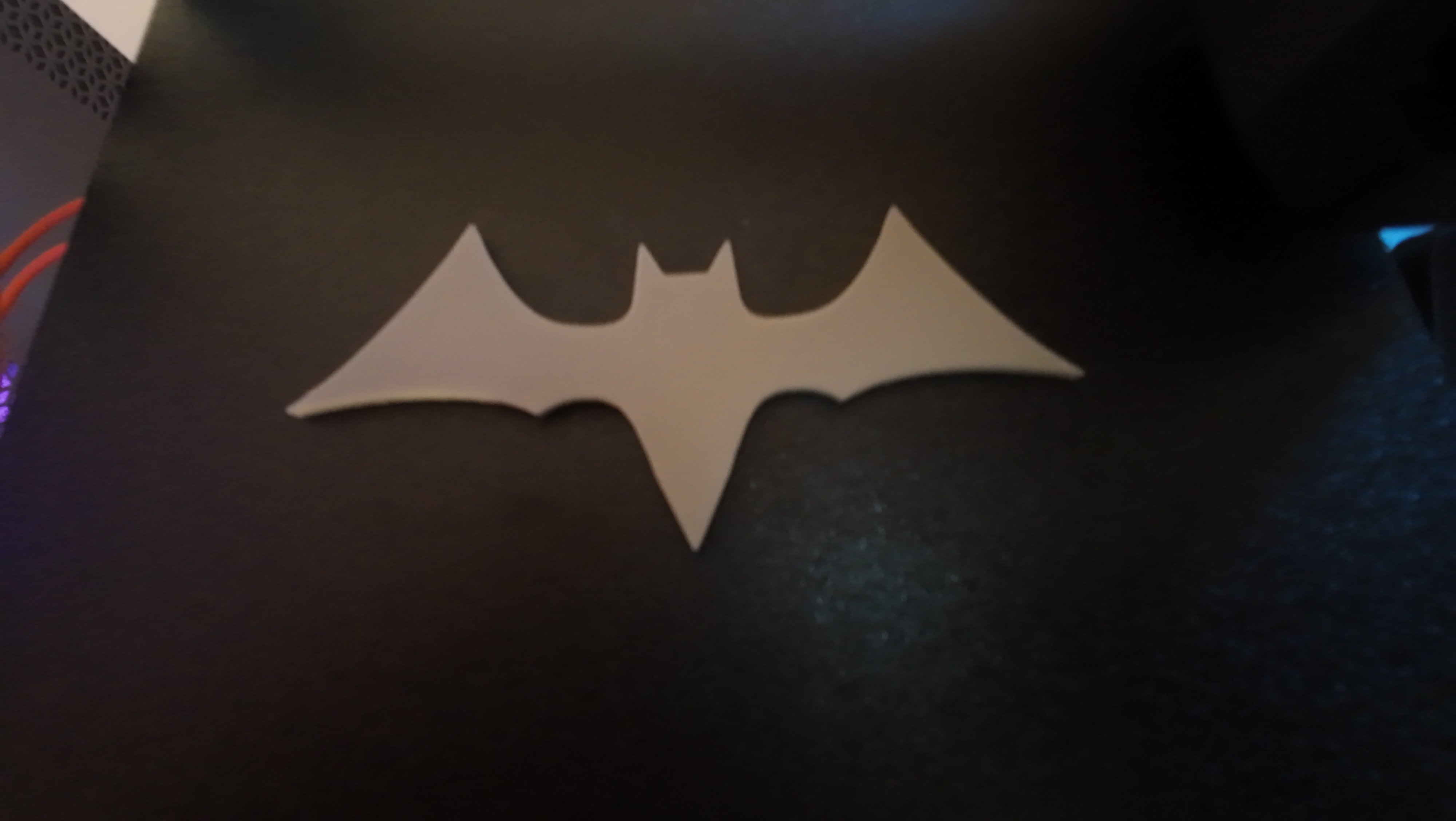 Batarang bền chắc lấy cảm hứng từ Batman, thiết kế tự làm. In nhanh với infill 45%, không cần supports. Gợi ý kích thước 14cm dài, dày ~3mm; dùng PLA, PETG cũng ổn.